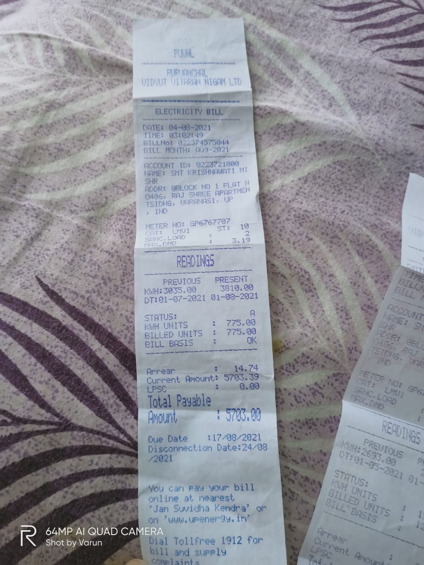 Dear Sir, I am writing to point your attention towards the above-noted subject. Recently I have received the bill for July2021, which is much higher than my usual bill amount. This concerns me a beat since lately I haven’t used any electrical appliances that could escalate high electricity consumption. My previous bill was 1500 and in the month of july it us jump 5780 rs, sharing bill for your ready reference
