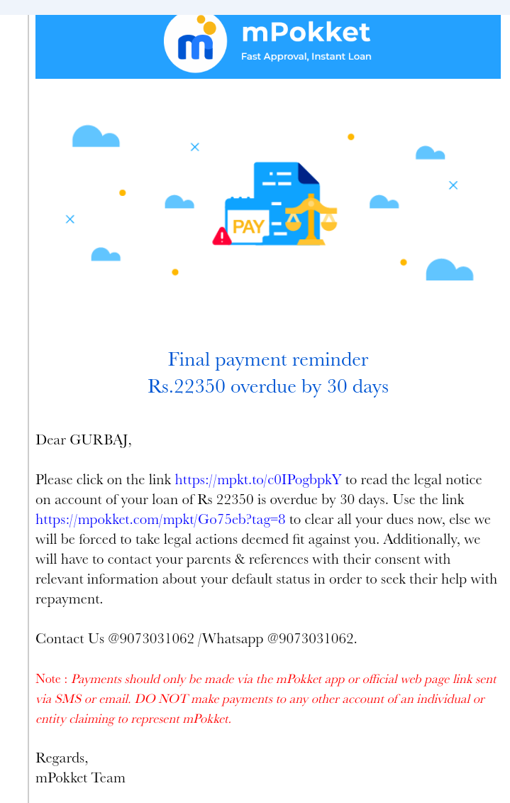 Yes I have taken loan from mpokket. It’s 30 to 40 days past for overdue of loan. I don’t wants to pay there amount. Bcz it’s not registered nbfc under Rbi. After strict restrictions given by Rbi and Cbi.