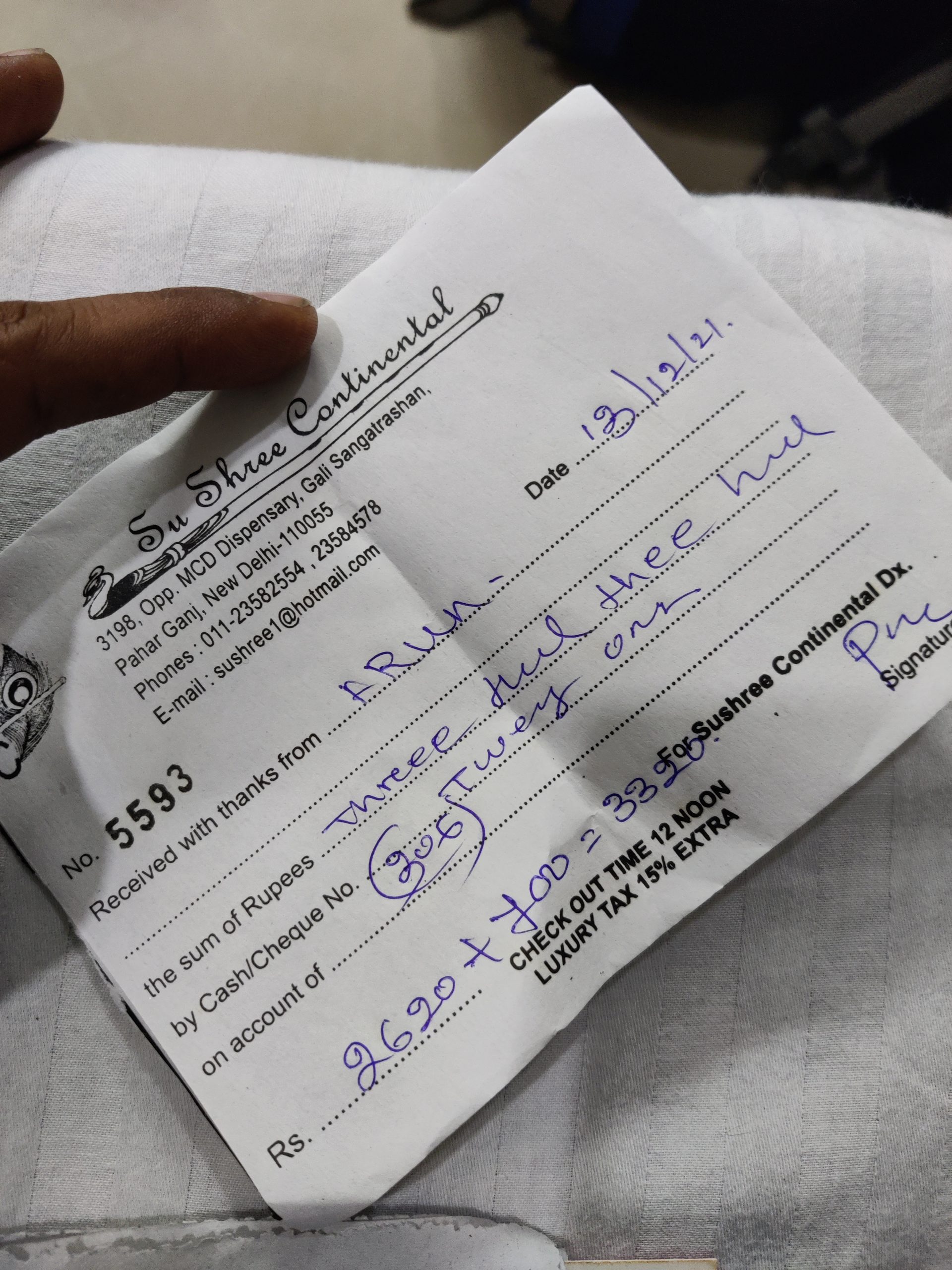 A Hotel in Pahadganj , SuShree Continental refused to provide GST , and charged us Full amount as shown in Goibibo including GST.