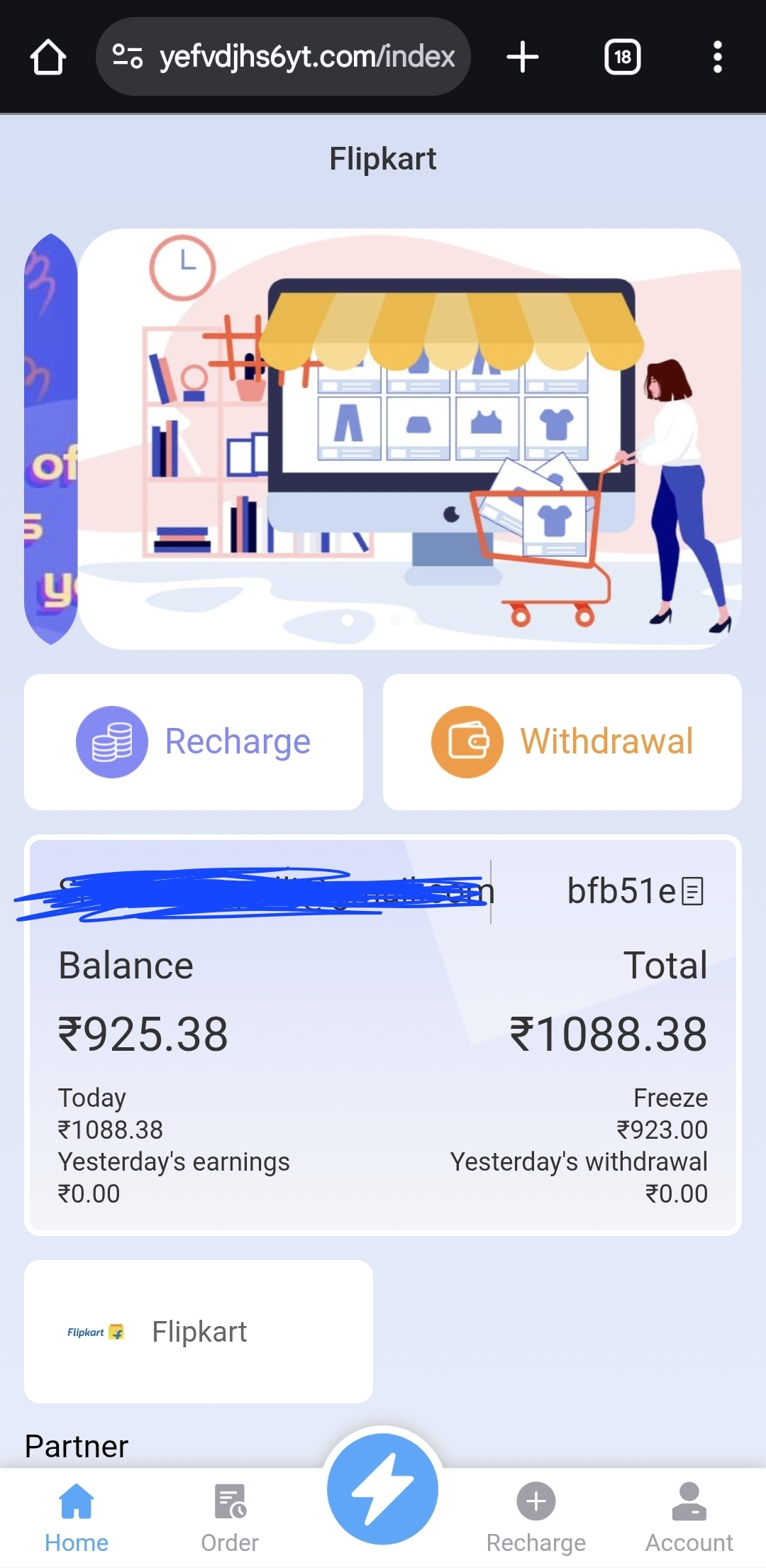 https://yefvdjhs6yt.com/indexthis website they are cheaters they ask me to join with 100 rs i joined then they assigned me a project then they ask me to recharge with 500rs i joind with 500 they gave me tasks they told it is a flipkart app they will help customers so i trusted them then i worked and they asked me 300 again 100 and again 200 rs and then again they tell me to recharge with 550 i told them about my situation they are listening about my words they literally telling me go and recharge then only you will get withdrawal so i asned my money and i tell them i gave a complaint they told me we have all rights now go and file a complaint our legal team will call you then you will go off so i just asked my money to refund they didn’t responding my messages please help me