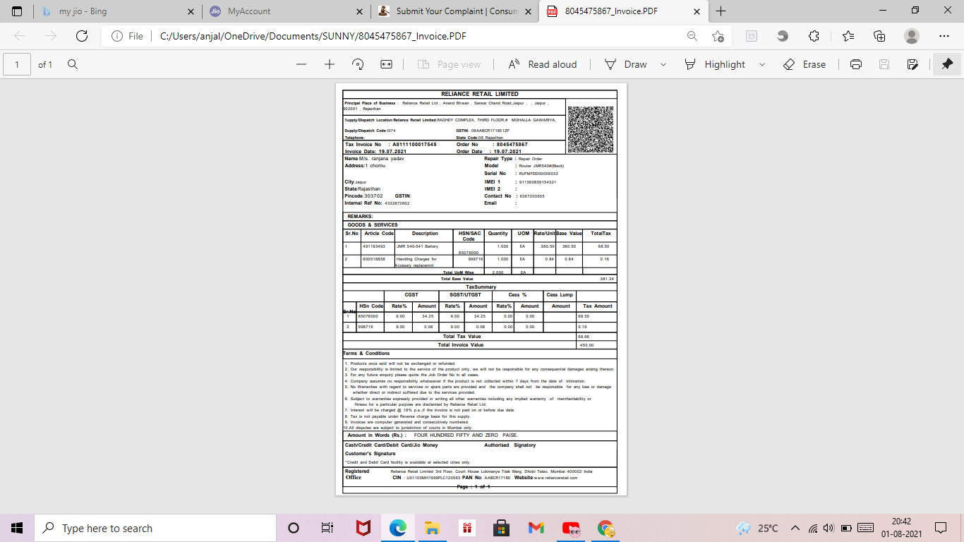I was brought a jiofi (JMR 540) battery from a jio retailer chomu ..radhe complex but when i was charged it it does not charged … then i went to jio retail jio retail’s member call me it don’t returnable also i went there in 24 hours……..