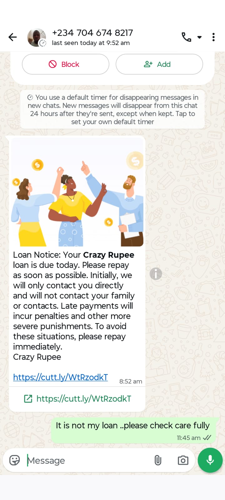 I did not take any loan from crazy rupee and credit wallet but harshment and blackmailing message recieving from 22/04/2026 via whatsapp and text.