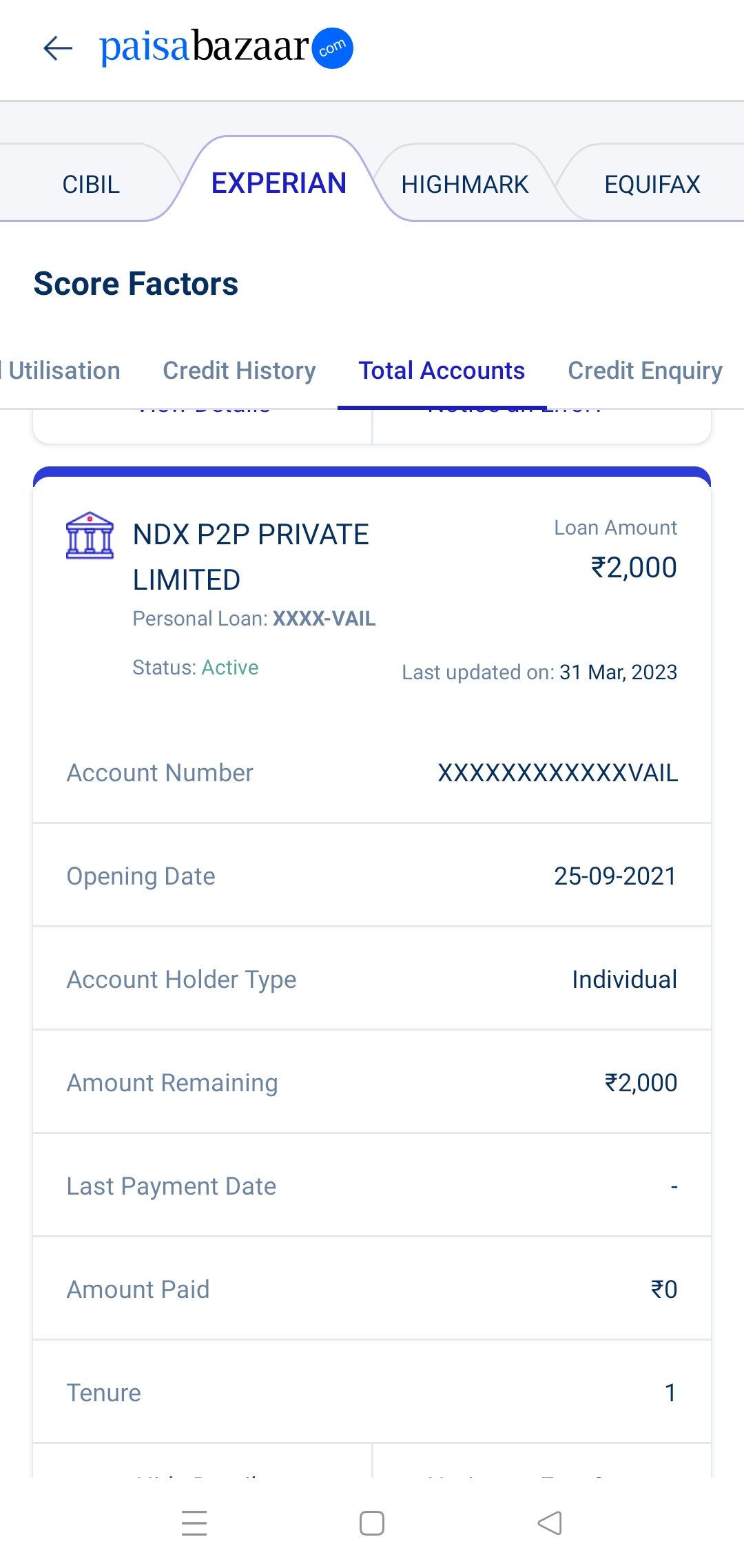 did not taken any loan from NDXP Financial Institution but showing in my CIBIL score that, I have taken loan of amount Rs. 2000/-. Please resolve the problem and remove this from my CIBIL account.