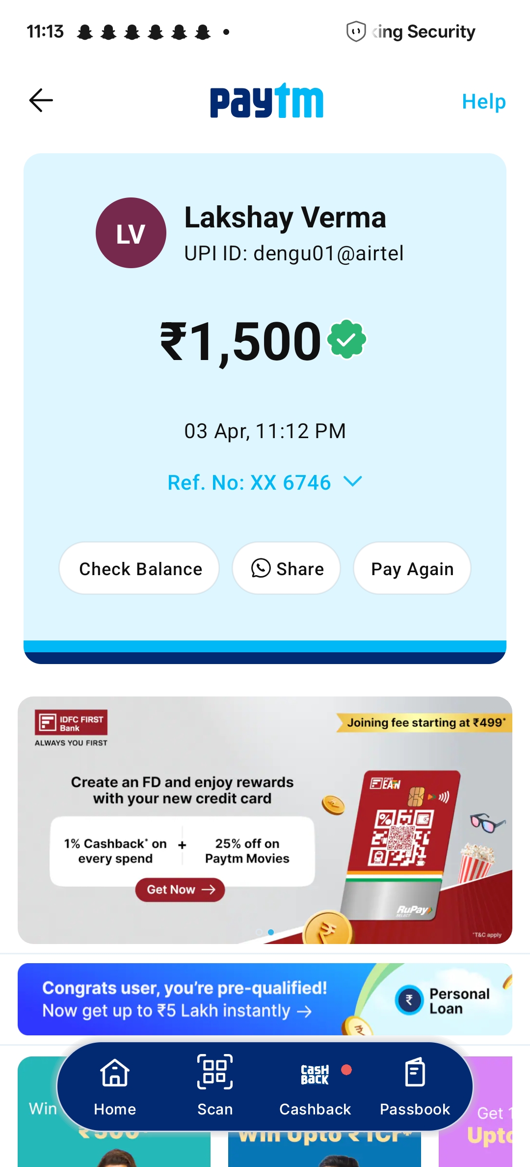 I was applied 1500 got credited 800 it’s 7 days loan, I have got scared borrowed from friends I have cleared the payment after two days of the loan received.