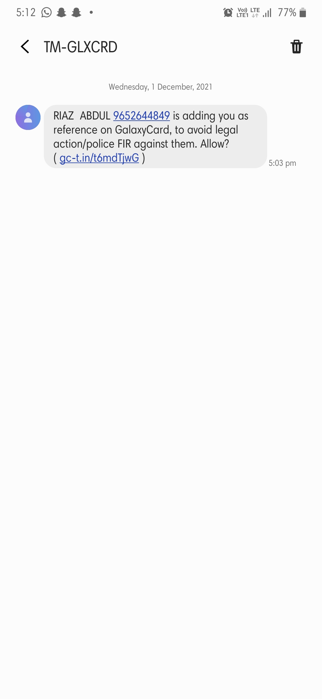 I got a message saying A person Abdul riyaz is adding you as reference on galaxy card where I don’t even use galaxy card. And I’m not responsible for any consequences.