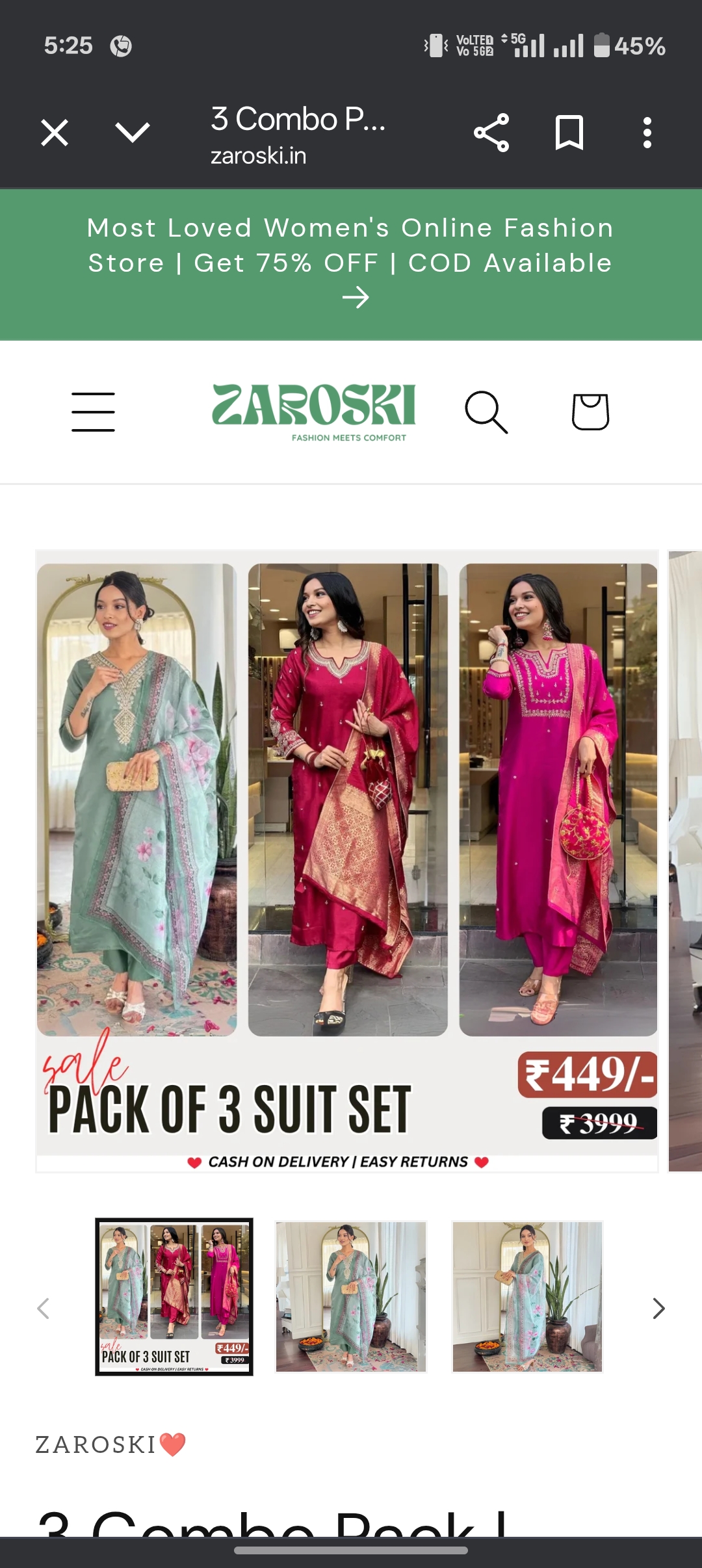 I had ordered 3 dress for zaroski brand for 499 and I got an kurti and damaged t-shirt