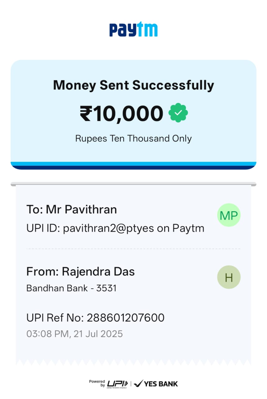 I have deposited 10000 money in pari match id – 510516680. On 21/07/2025