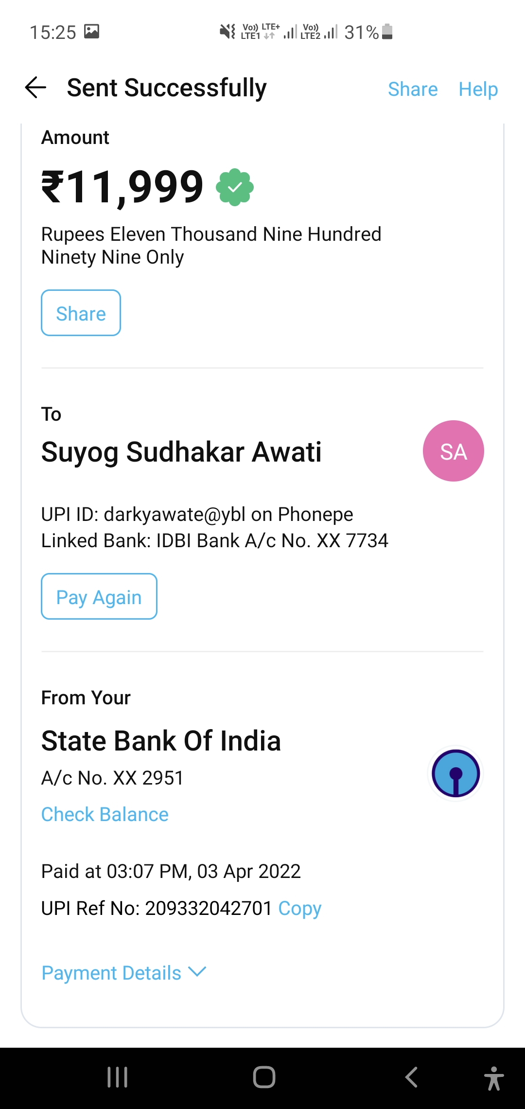 The contact no og suspect is 7739592897 he is telling me that u m from loan department and saying me to pay 11999rs and already I have paid 11999 and I have send screen shot then he is sending me adult posting and telling me to pay amount of will post ur 11999 other wise I will post your family images to ur friends and family.