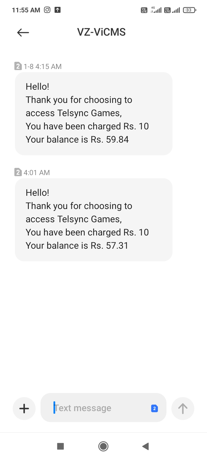 You have been charged Rs. 10