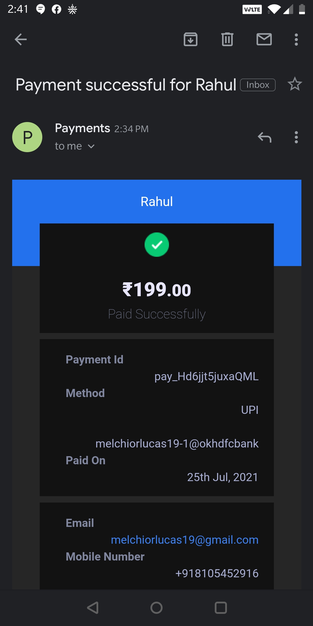 I have paid 199 for loan as security deposit, now I have not received my loan amount or the paid money