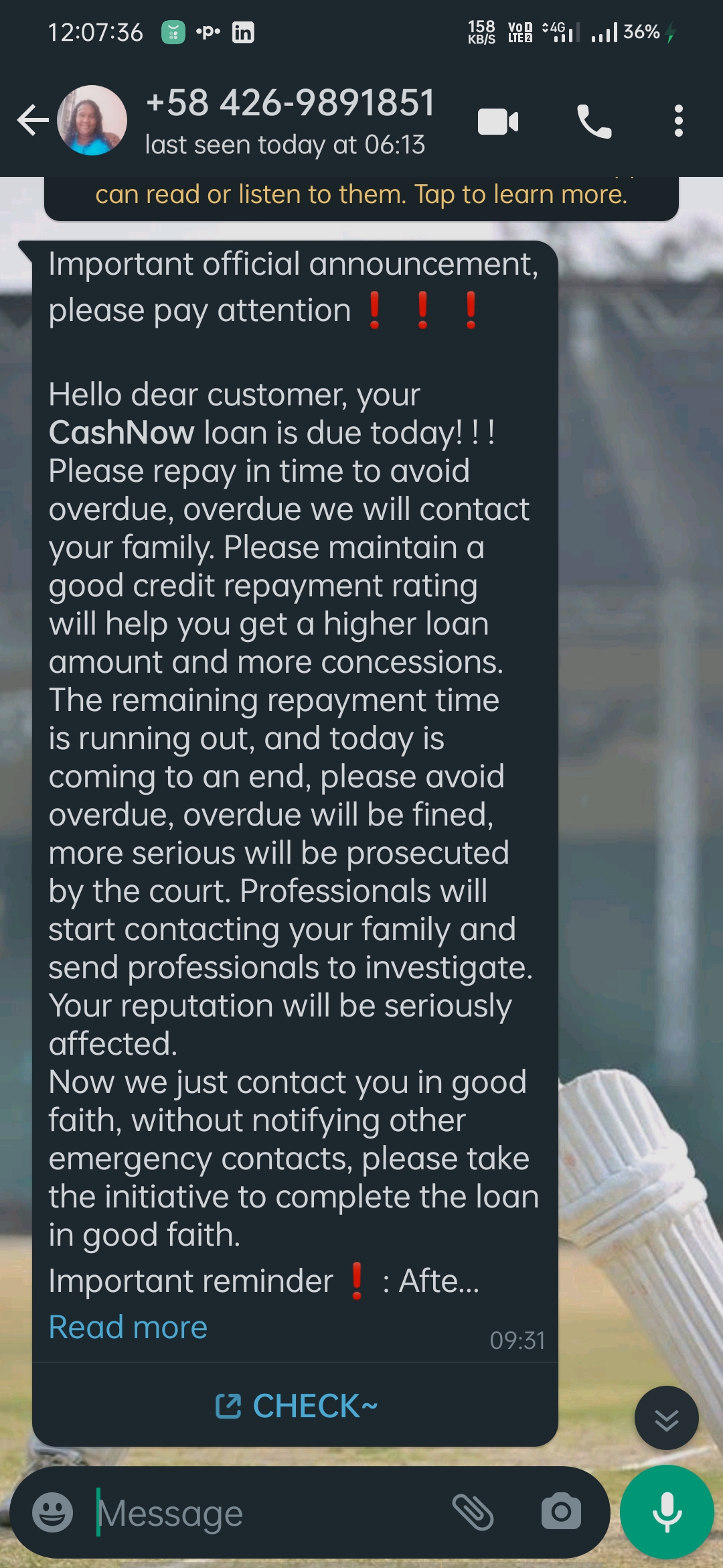 I have not taken any loan from cashnow app but they are keep on messaging me on WhatsApp and normal messages to repay the amount.please take a action on this app.