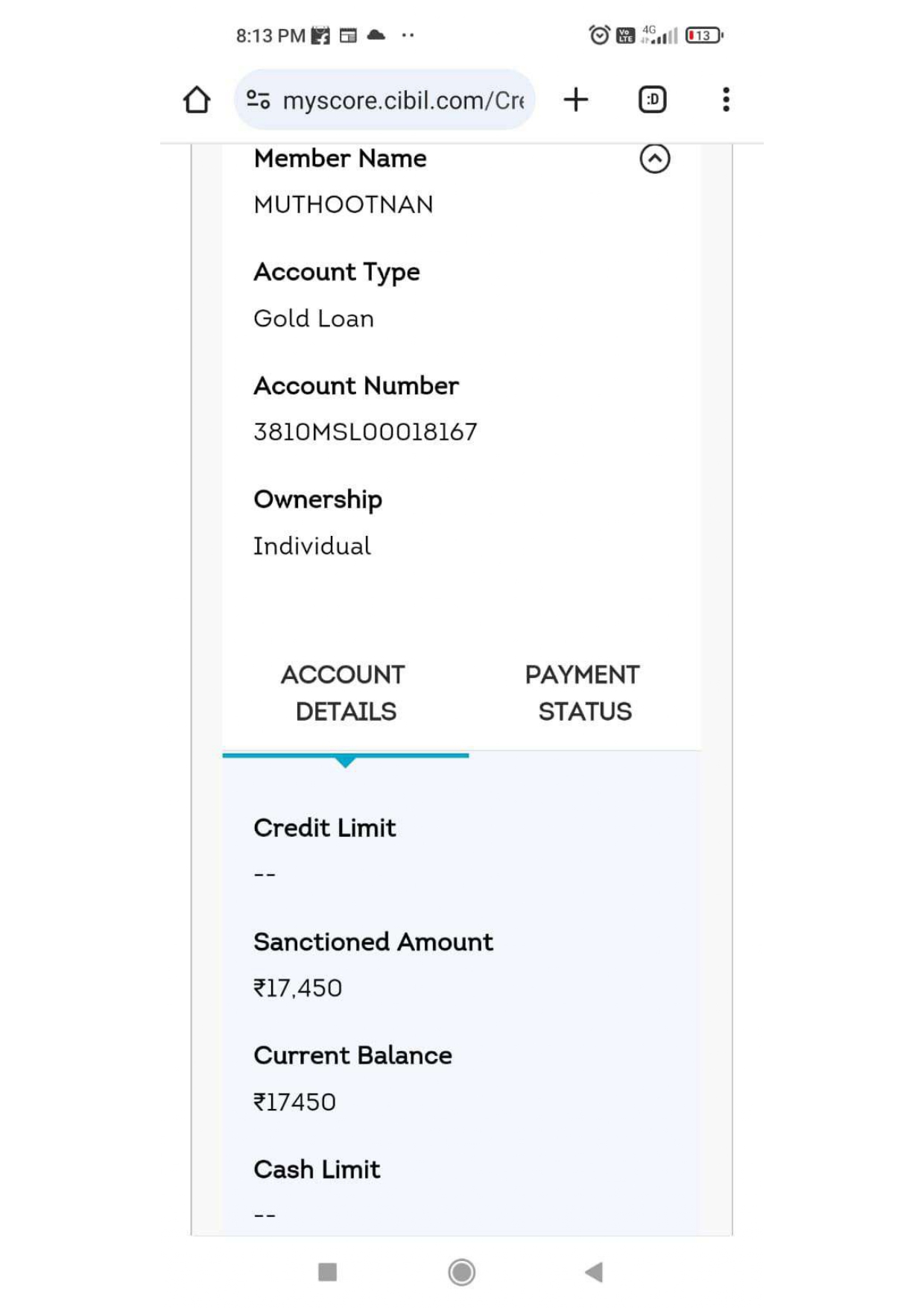 I have never taken Gold loan of Rs.17450/- from MUTHOOTNAN,it showing i have taken Gold loan no. 3810MSL00018167 on 29/10/2020 and not paid because of this my CIBIL score has decreased points.