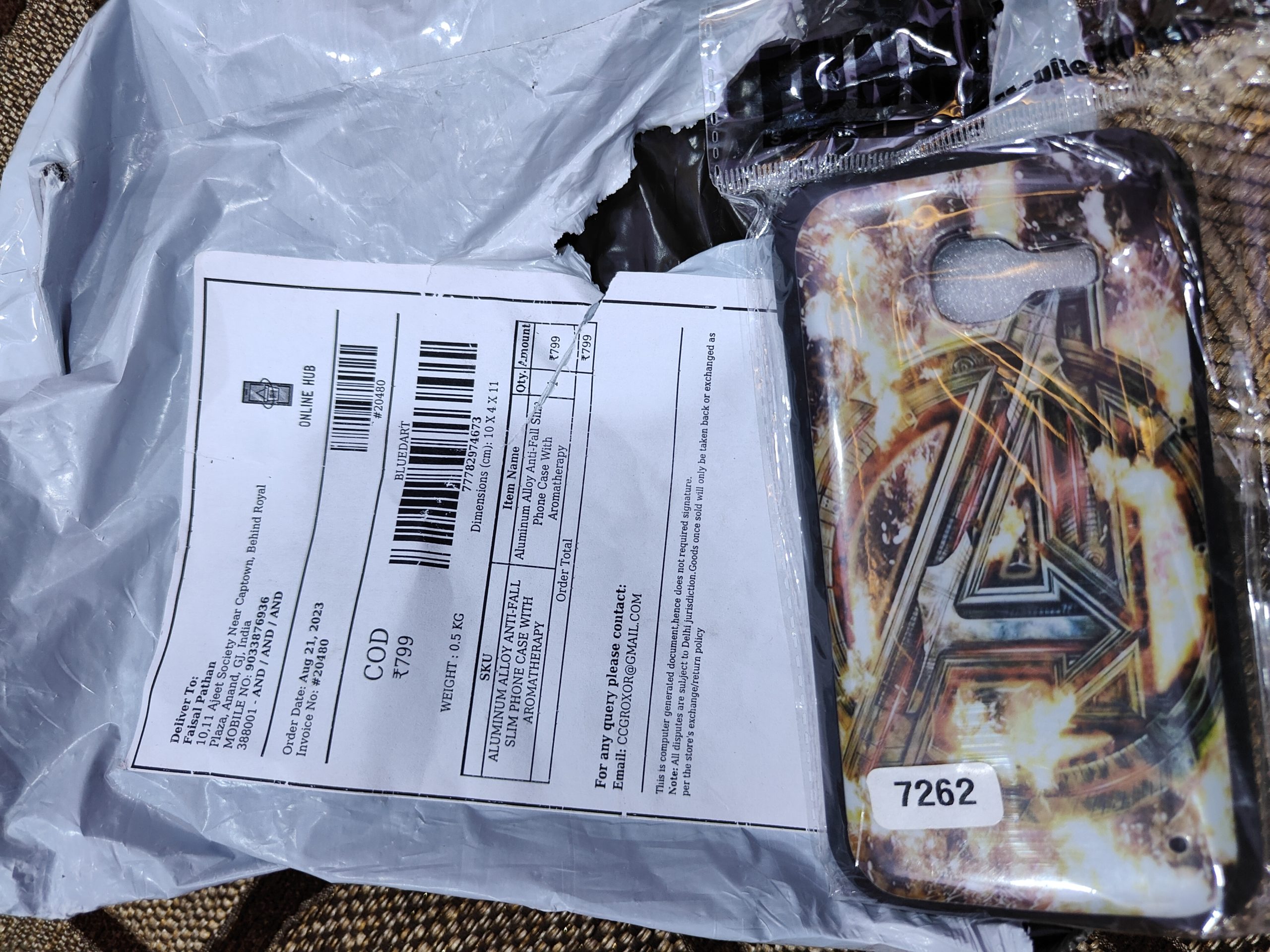 I have orderd Aluminium iPhone 12 cover for My phone but Today( 23 Aug-2023) I received my courier from Blue dart 77782974673 I paid my 799 amount after few minutes I opened my box And got 50rs Samsung j2 cover instead of iPhone 12 (799 rs).