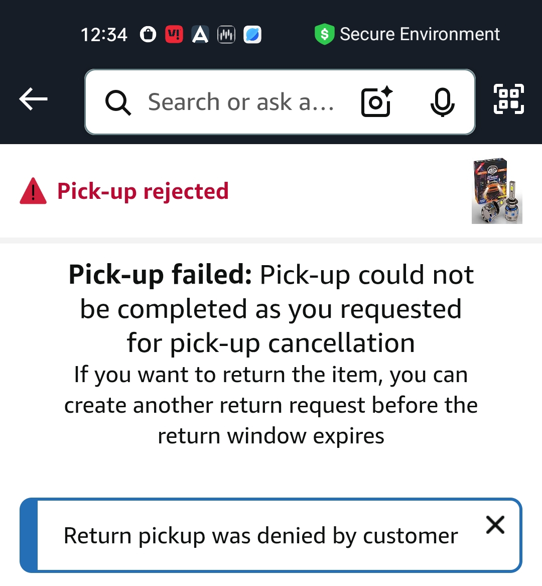 PRIVON H4 LED Headlight for Car 210W 21000LM 6500k. Item costing of Rs. 5499/- But I have received the fake item and tried to return and they have accepted the return but unfortunately no pickup executive called me for picking the item and 3 days ago I have got a message that I have rejected to return the item but I didn’t get any call and iam afraid of fraud happened to me that iam not able to return the item.