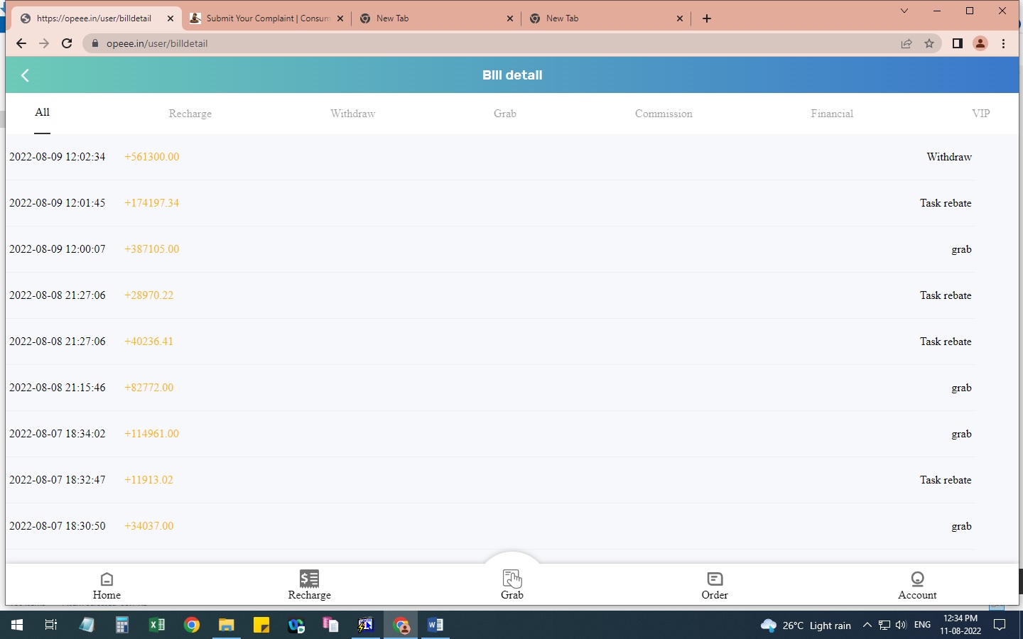 she/he said that you can register your details in https://opeee.in, then I registered ,after telegram link is followed me ,he provide the 1st task please you will recharge 200 and get 240 then I recharge and withdraw money 300 with rebate commission then he provide 2nd task you will recharge 500-10000 get 10000, Then I recharged 500 and get 1333, then he said and provide 3rd task you will recharge 10000 get more money, then I recharged morethan100000 then his again again assigned big task ,i cannot withdraw my money his again again say that you don’t complete the task you can not withdraw your money , he is cheated me i don’t know his totally deceived my money more than Rs 300000 ,so please recover my deceived money , and then yours please consider me, i have attached for your request additional information for your reference and awareness There are my website like https://www.aggg.in, https://parkjbb.com, https://www.ymtt.in. Thanks