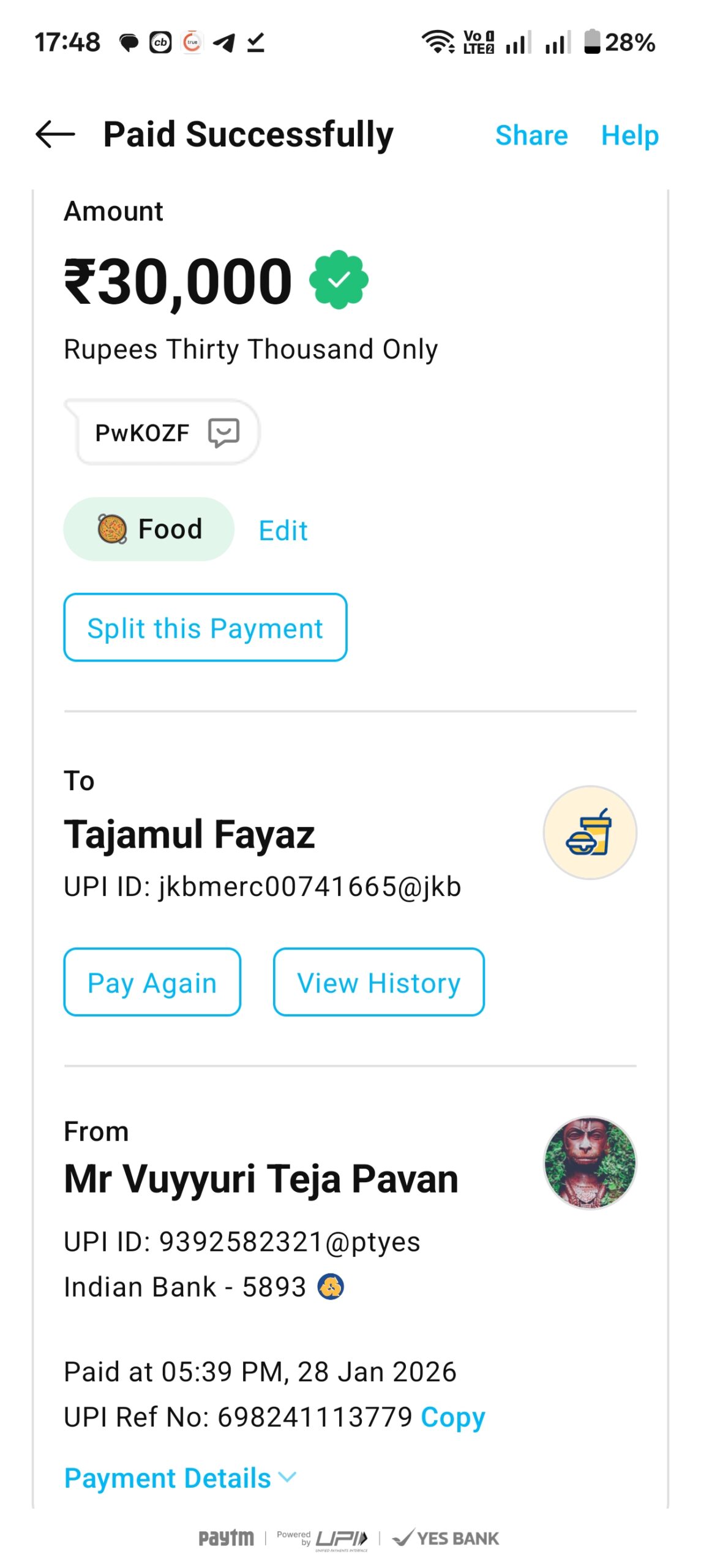 On January 28, 2026, I deposited ₹30,000 into my Dafabet/Dafa Sports account. Despite providing all required proofs of payment (transaction ID, bank statement, screenshots), the company has failed to credit the amount to my account.