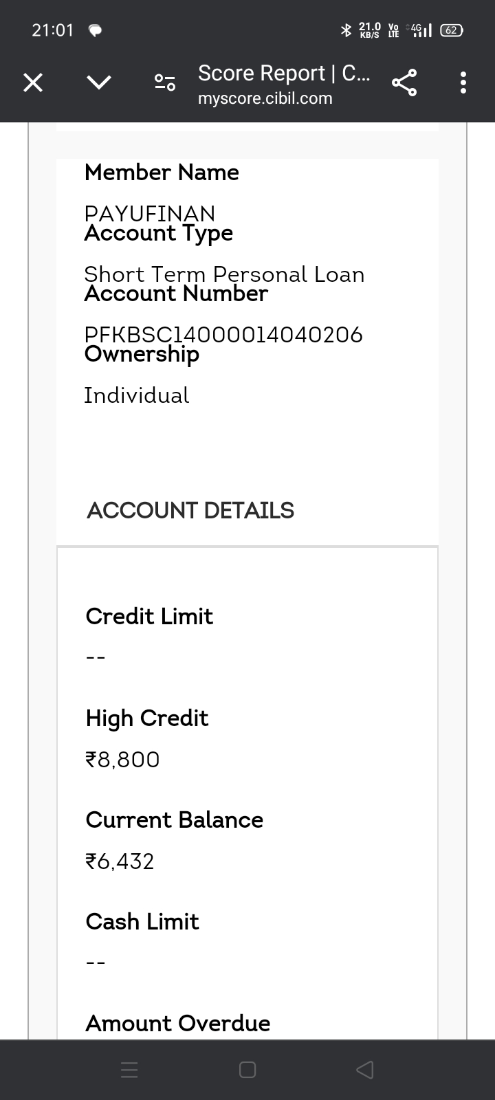 i never get a loan through PAYUFINANCE but in my civil show the sort term personal loan in the amount of 8800. for that reason my civil score are put in down and very low. please resolve my problem