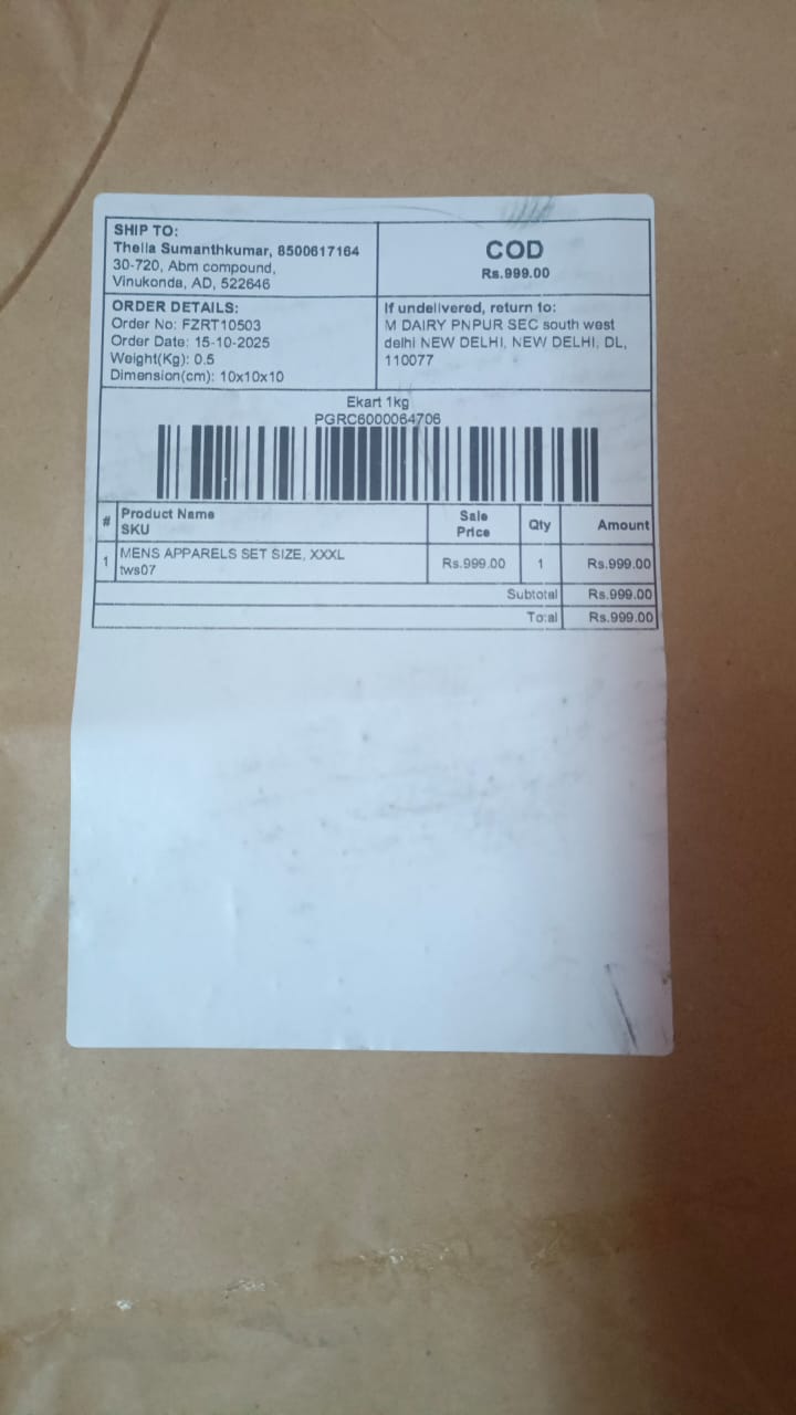 I orderes 4 casual shirts 3xl size but they send two t-shirts with one is m-size and another is L-size