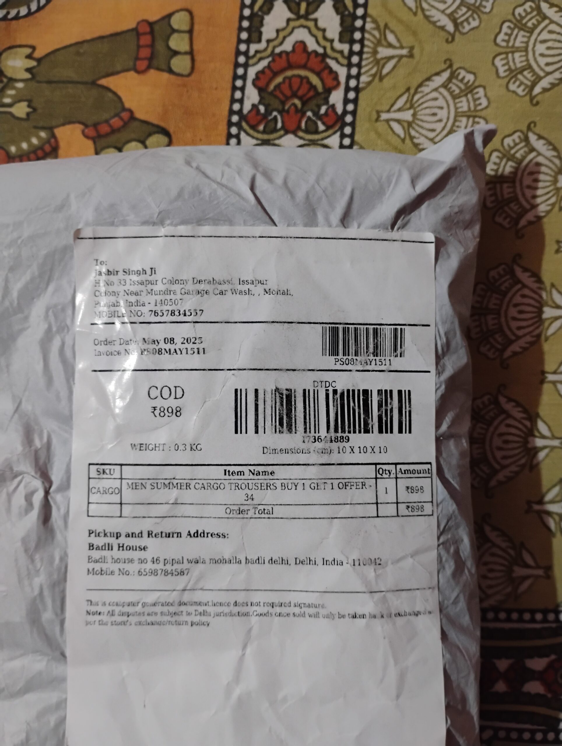 I ordered cargo pant on 8 may 2025 which I received 13 may 2025 and it’s disaster the old and also very dirty and even faded like it has been used from many years I done payment also how I return my amount bcoz it’s not worth for me kindly resolve this problem I want my money back mobile no 7657834557 name Jasbir singh