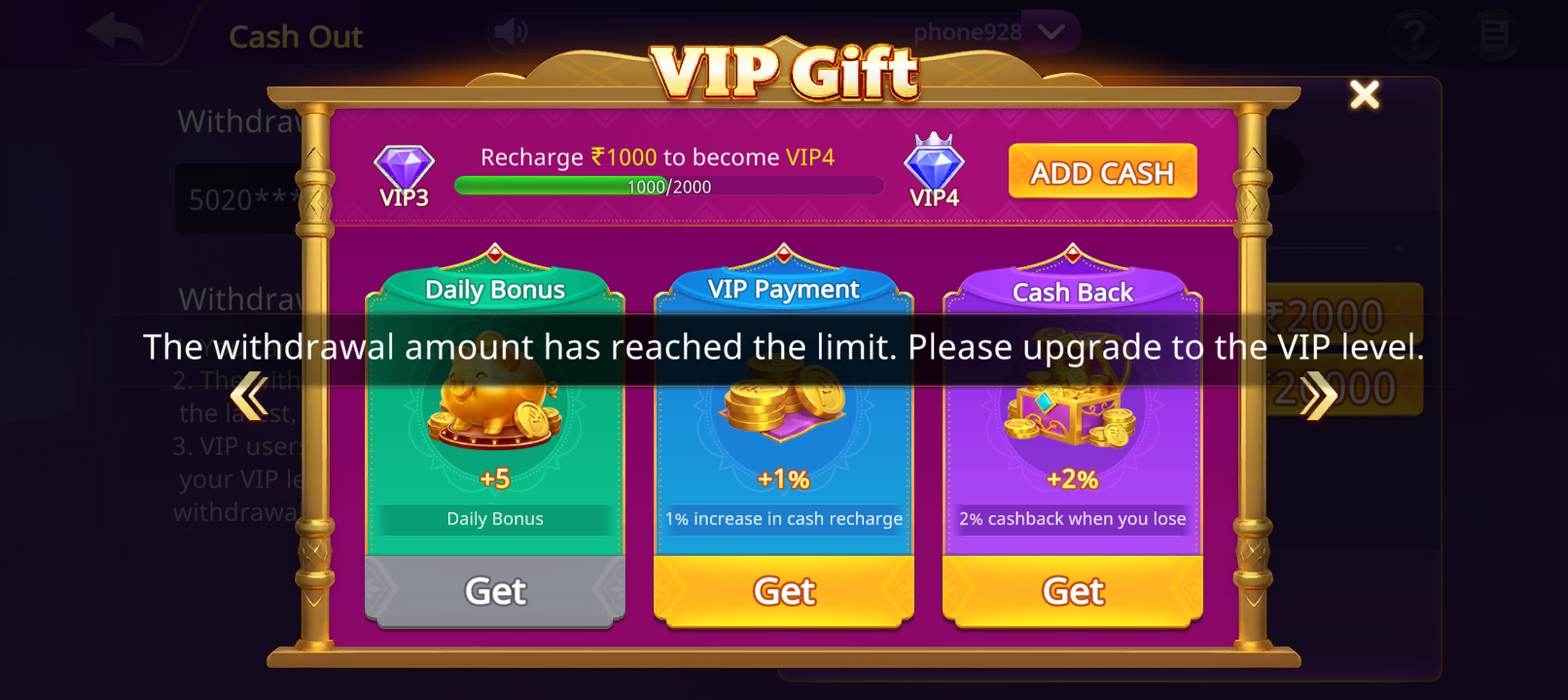 I paid 1000 rupees for getting VIP Level 3 that was required for withdrawal in game but after I paid i can’t withdraw because of VIP Level is low, customer support not responding after 1hr.