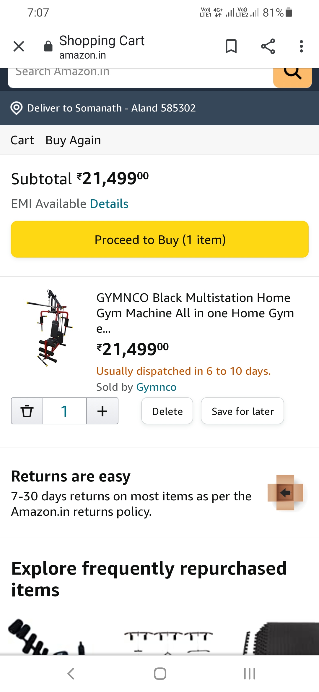 I purchased gym set and paid the amount but delivery time also crossed still its not received and money also not refunded