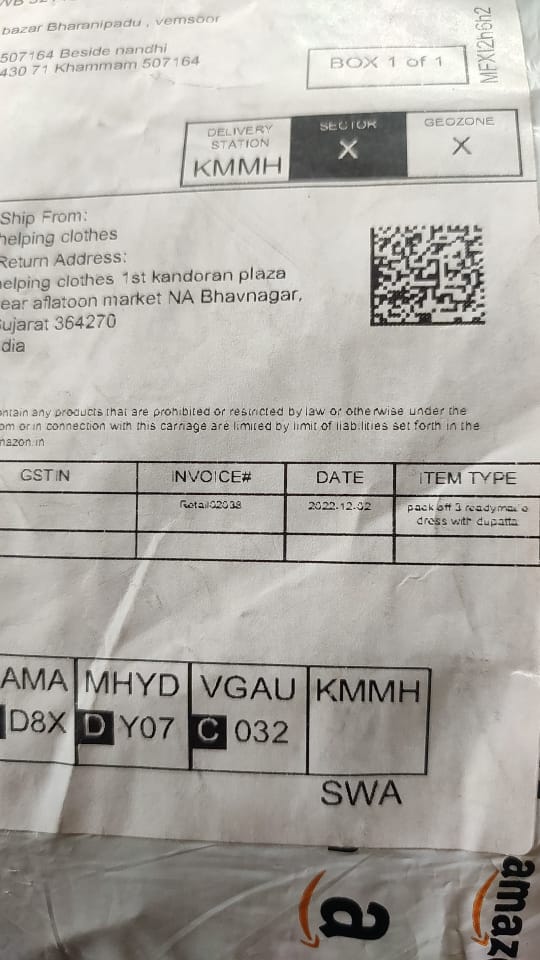 | Name(s) of companies complained against | Helping colthes delivered through amazon |