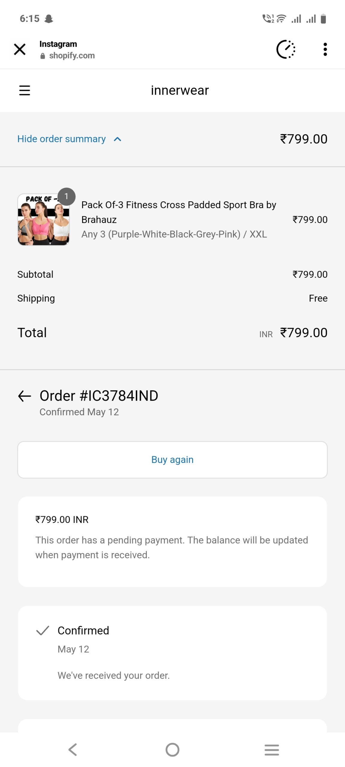 I received a underwear when I ordered a set of bra and now there is no compas sation it’s was for 799