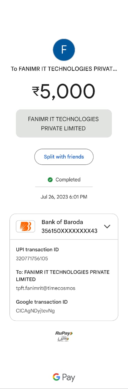 I have recharged in teenpatti on 26th july for fanimr it technologies private limited no responce from them no of times i sent mails but no responce pl kindly refund my payment of 5000rsbpaid through creditcard of bank of baroda