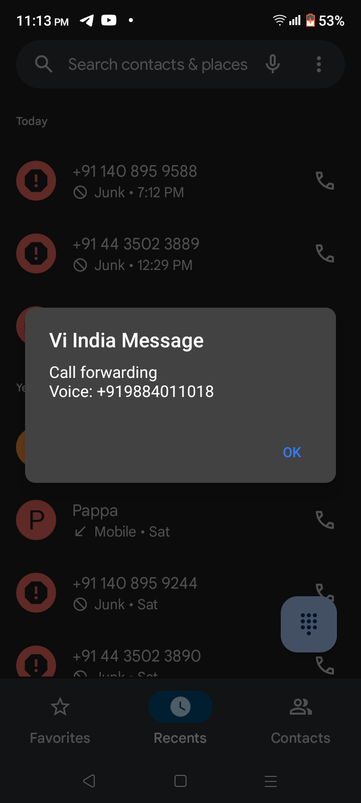 My phone calls not in safe i understand when iam calling to anybody..*#62# call forwarding i get the number 9884011018 ##62# but it’s not deleted again it’s showing the same mobile number so kindly take immediate action right now..
