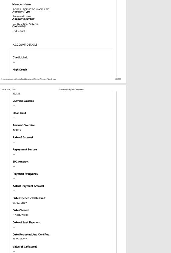 For this i tried to contact PC financial company but the company showing as licese cancelled by rbi.