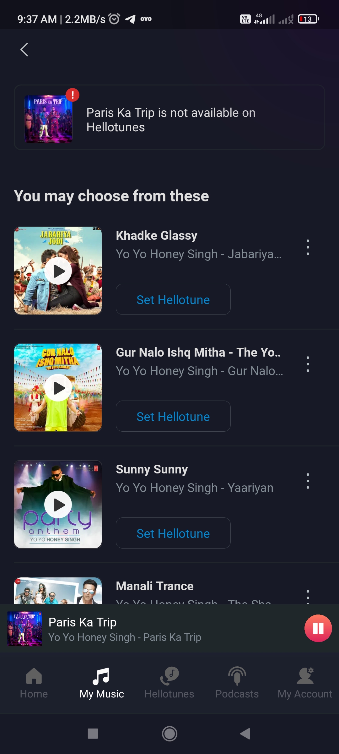 I want Paris ka trip song on helotune but did not set on callertune pls help