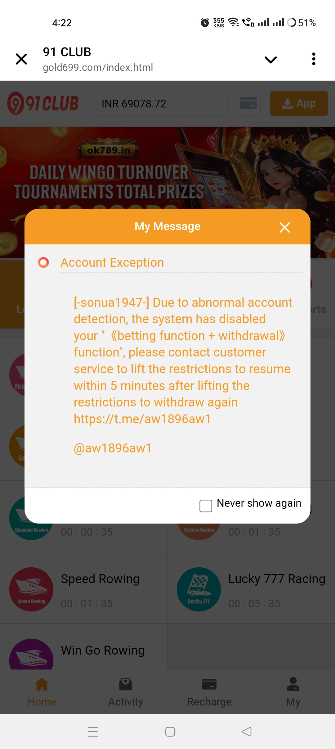 | Name(s) of companies complained against | 91club |