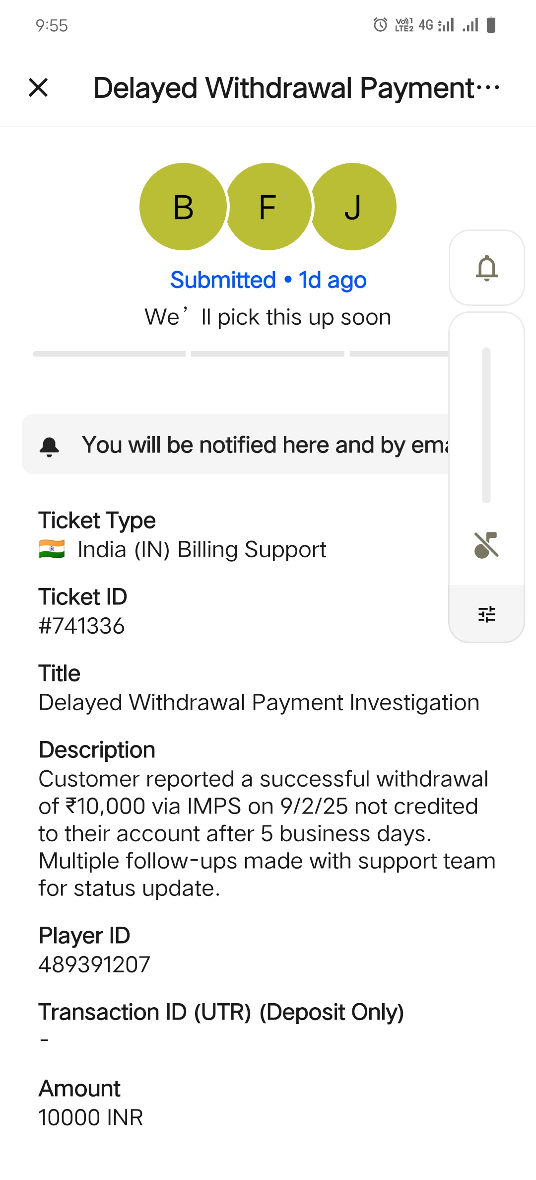 I deposited 10000 on 9/2/25 successfull but not credited to my account I complaint not no response