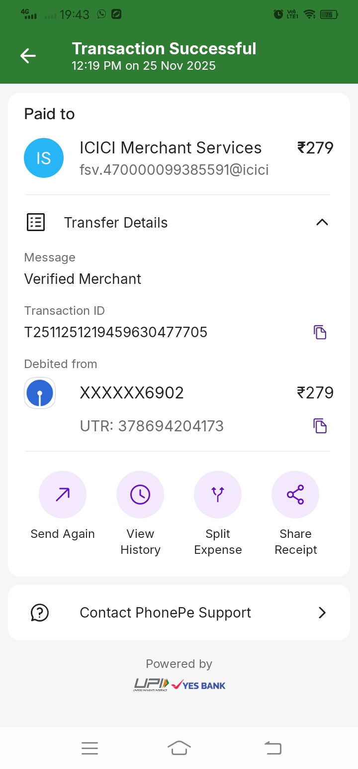 महोदय सेवा मे नम्र अनुरोध है कि 25/11/2025 को online purchase के दौरान मेरे पैसे phone pay app के द्वारा खाते से कट गये लेकिन न parcel कि कोई जानकारी नही दी गई और कब तक पहुचेगा यह नही बताया गया. ICICI merchant Services से मेरे पैसे लिये गये मुझे मेरे money वापिस चाहिये बारबार शिकायत करने के बाद भी कोई प्रतीउत्तर नही मिल रहा है कोई सटीक जानकारी प्राप्त नही हुई है वापिस से आप लोक बैंक की जानकारी एटीएम की जानकारी मांग रहे हो इसके आगे और क्या धोका होगा नही पता