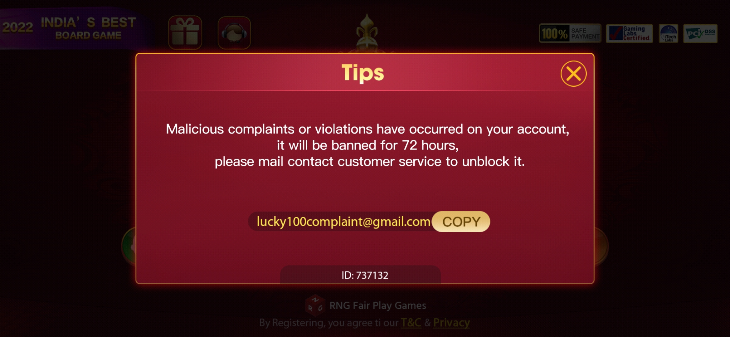 | Permanent link of complaint | Right click to copy link |