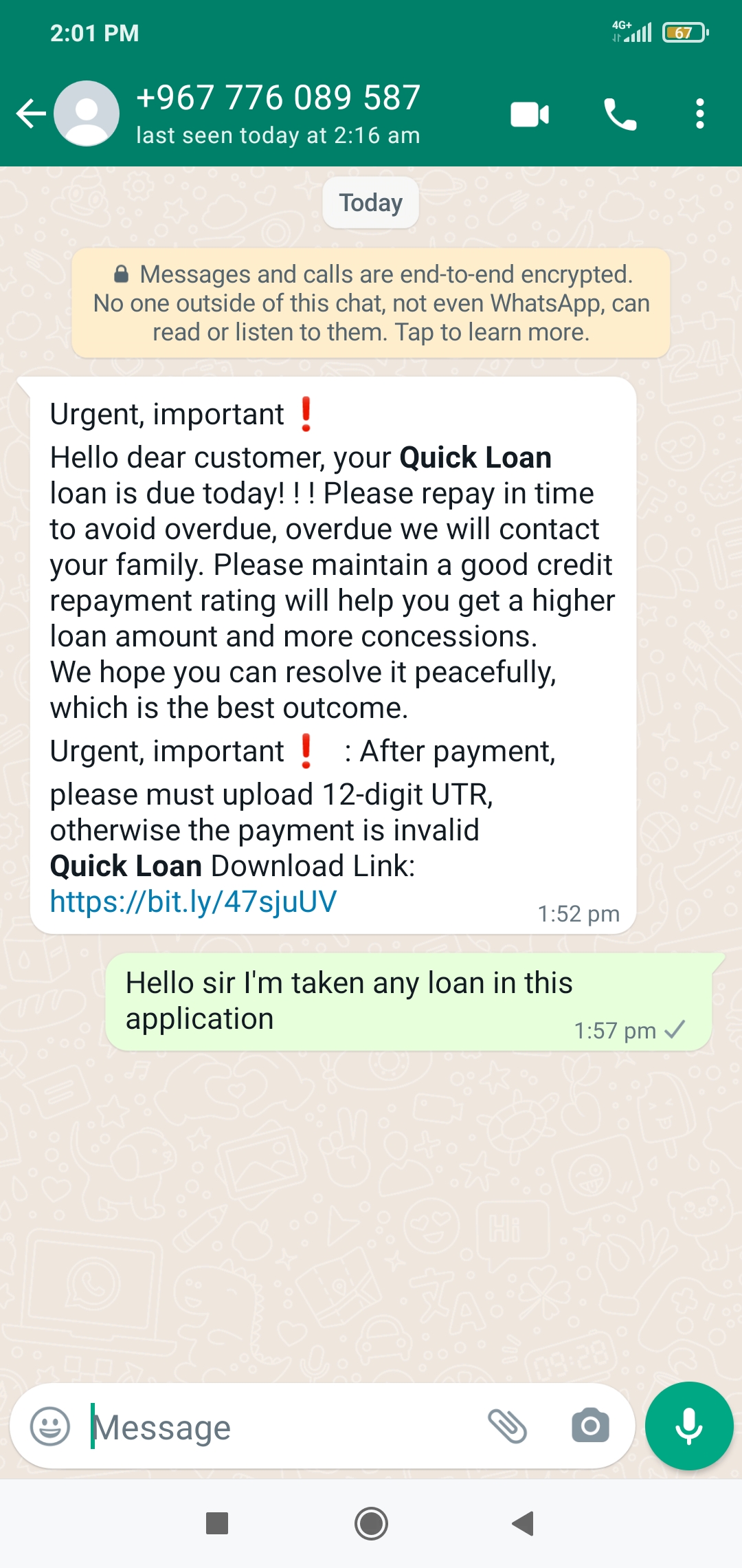 I have received massage from easy loan and quick loan app and they asking to repay the loan amount but I’m not taken and not received any amount from this application. Plz help in that