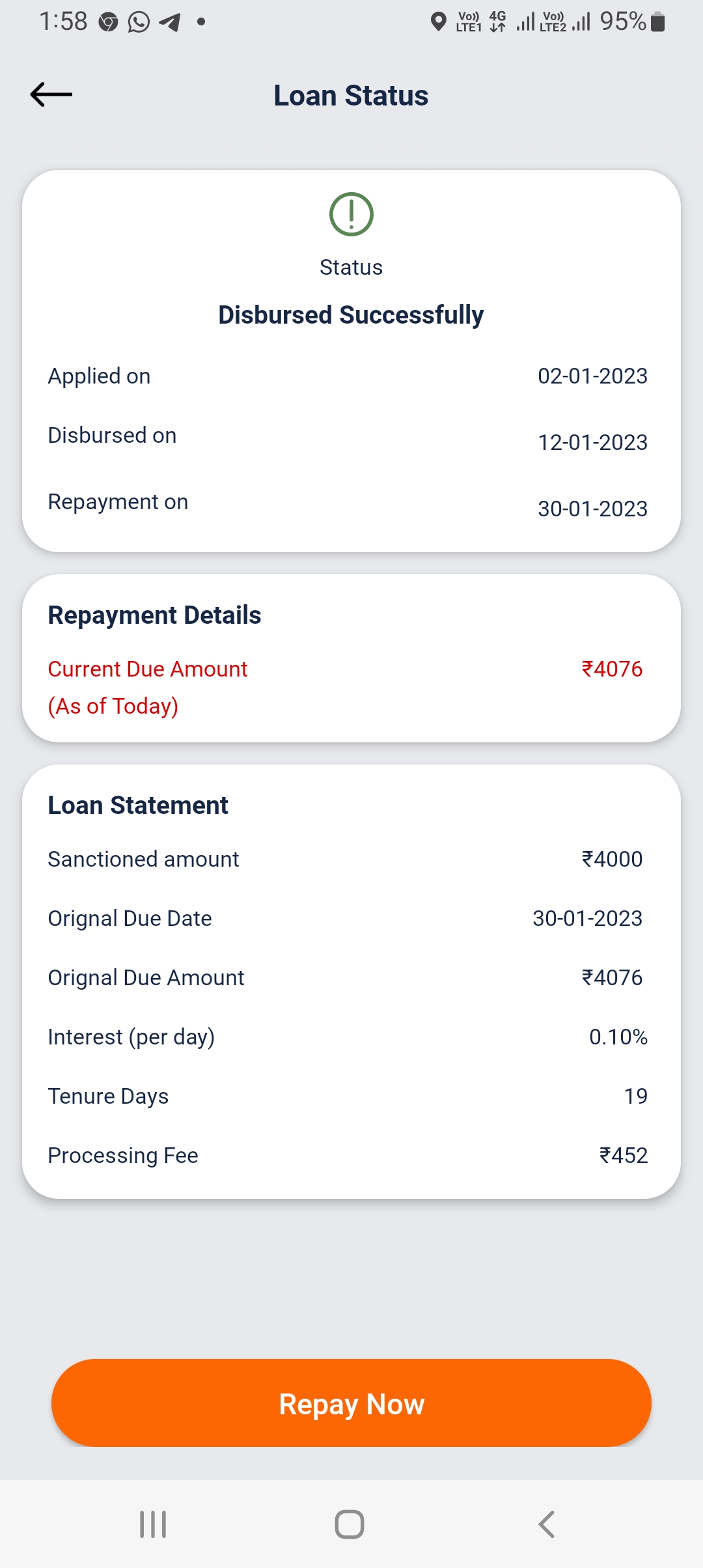 No money in my account. But your In the app it shows me my accoundil paisa sent and paisa from my account. You took the money in the form of repament and stuck with me. Please make an appropriate decision for me