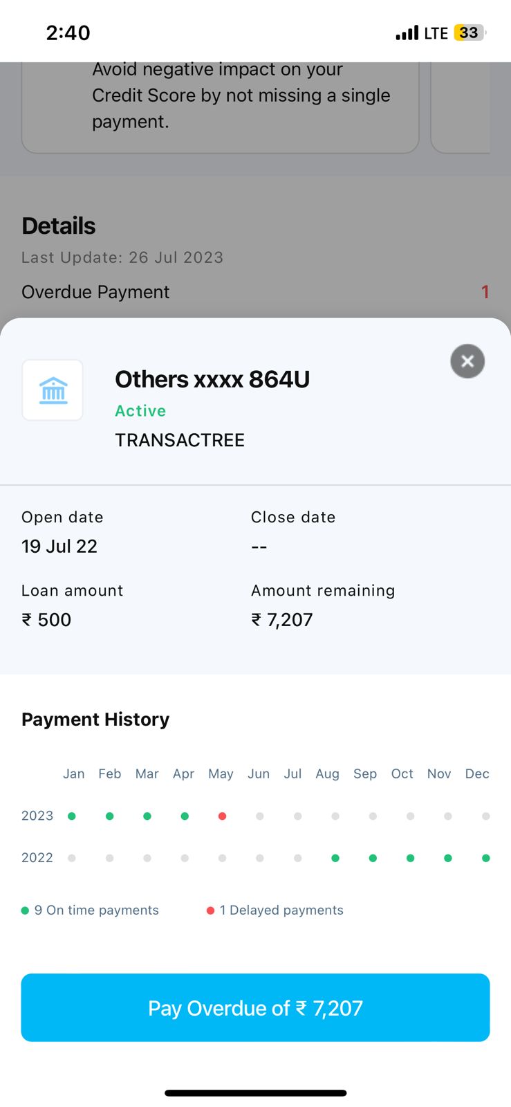 While checking my cibil score, there was one late payment recorded recently from Transactree which I didn’t even know about. Then I googled about Transactree where I found out that this one is from the Mobikwik app.I didn’t took any loan from Mobikwik. But it showing that I took a loan of amount 500 in my credit report which reduced my Cibil score.