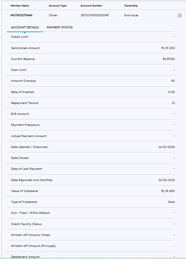 About one week ago, I noticed that a gold loan has been issued under my name from Muthootnan Company. I would like to clearly state that I have never applied for or taken any gold loan from MUTHOOTNAN at any point in time. This appears to be a case of unauthorized use of my personal details or identity.