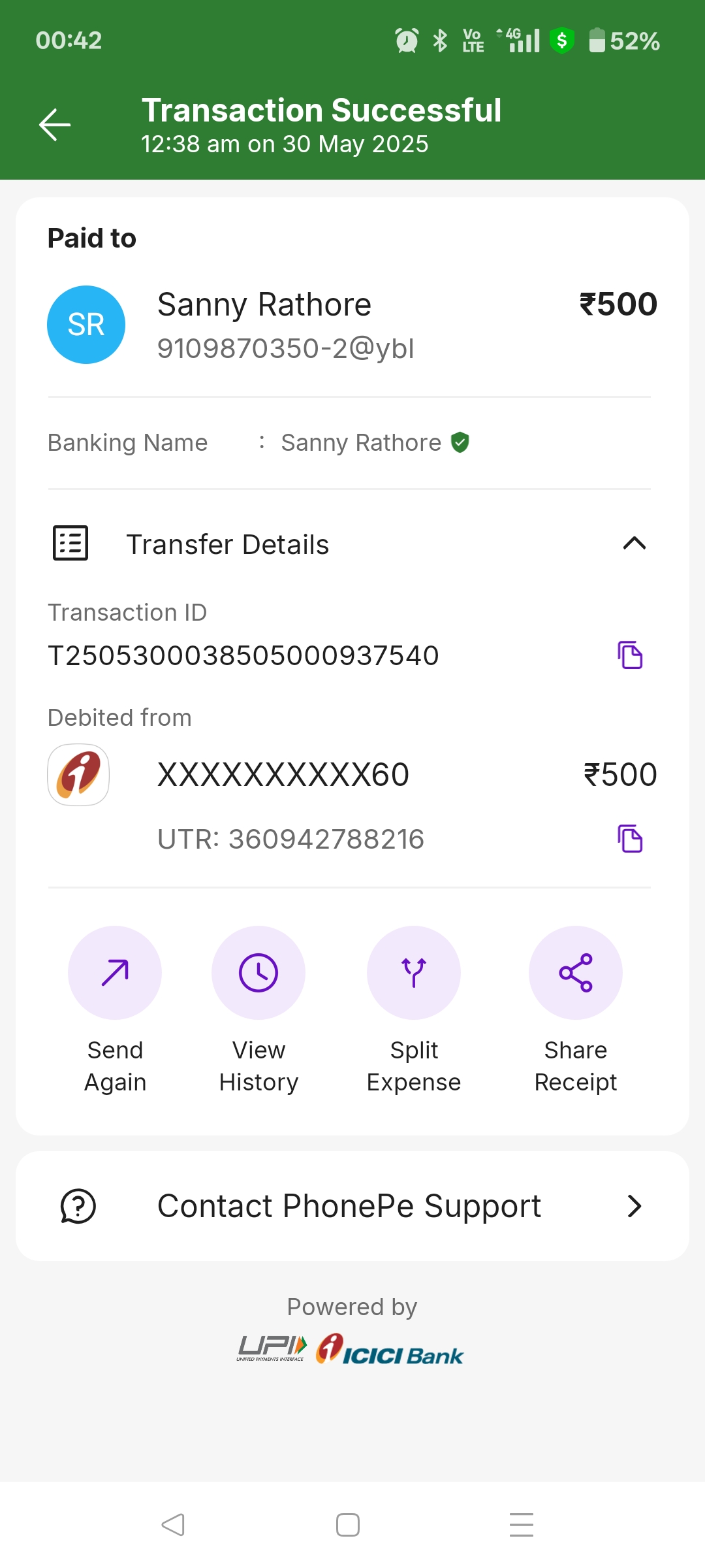 On 30 may 2025 I reacharge in Indiluck game app with 500Rs . Money is successfully debited but not credited till now .