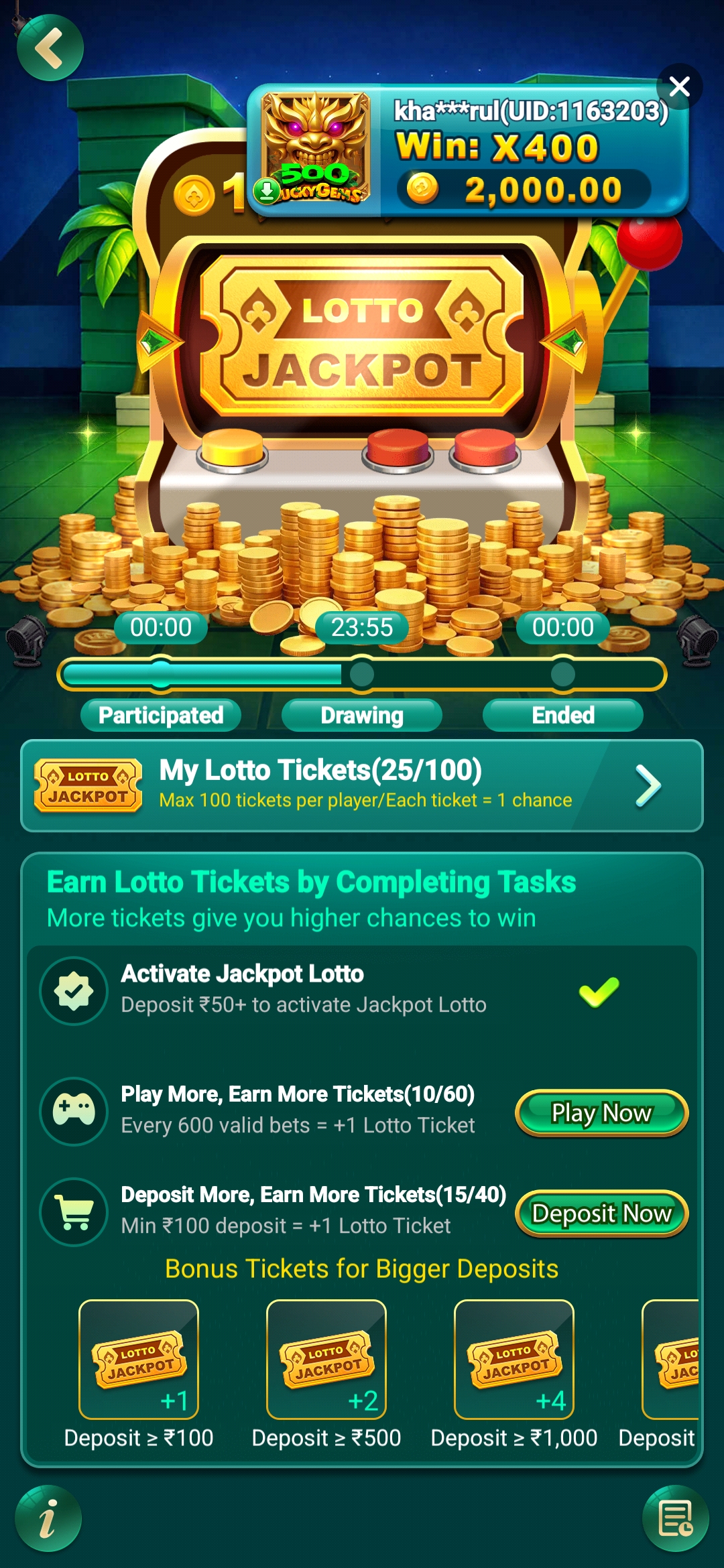 “INR Rummy (Yono-affiliated, UID 267813): Deposited ₹50, earned 25 lotto tickets via valid bets for Jackpot event (screenshot attached—25/100 tickets, ₹2L pool). Support claims RNG fair but refuses audit certificates, draw logs, or proof when asked. This violates transparency norms. Request full investigation, refund of deposit, and compensation for misleading promo. Bengaluru user.”