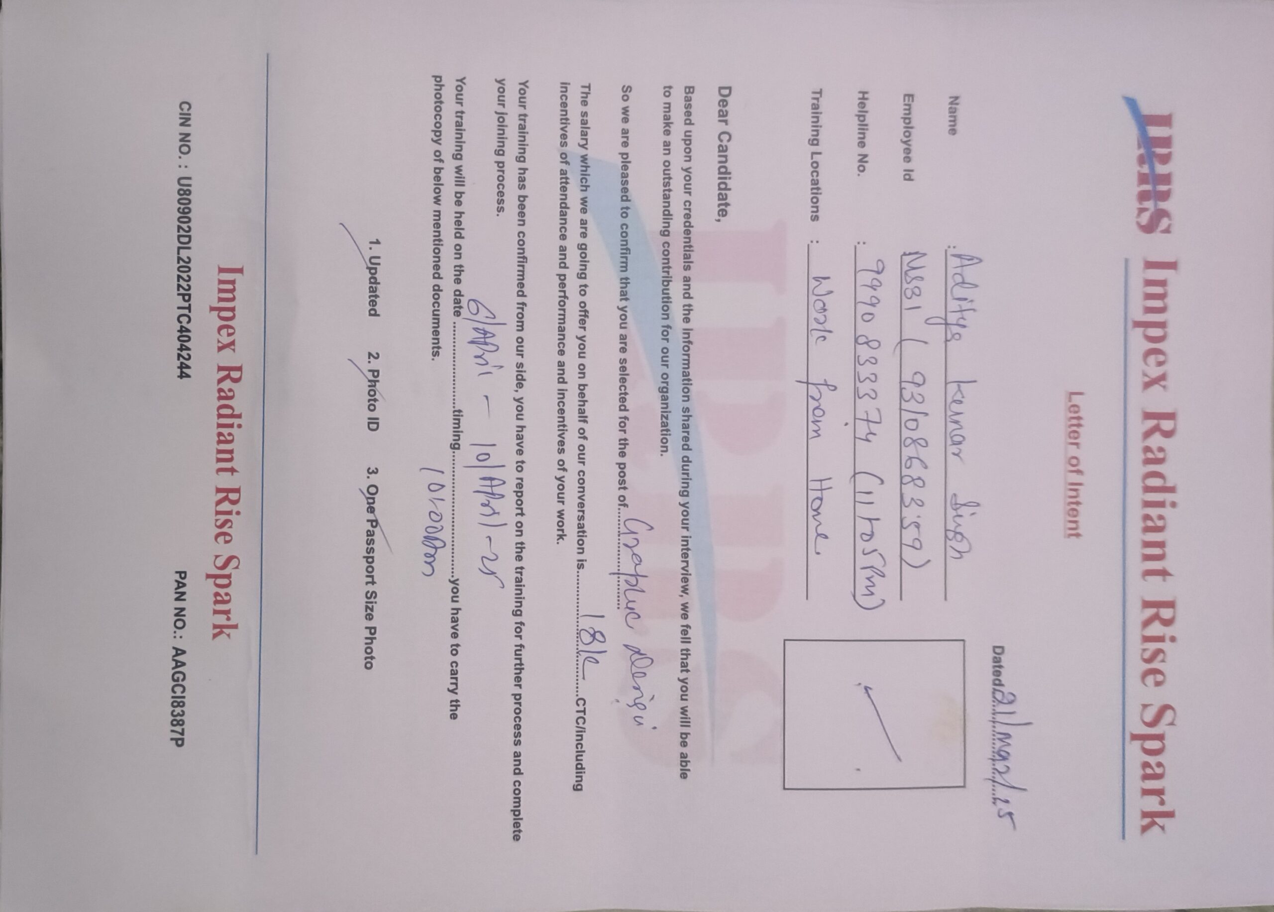 He then called me for an interview and told me the job of document verification and took 4800 rupees from him and said that after opening his salary account, money will be transferred to his account. But now I have not opened any account, it has been more than a month or they have blocked both the numbers, they told me that joining will start from *rd april, they blocked my number on *nd end of april.