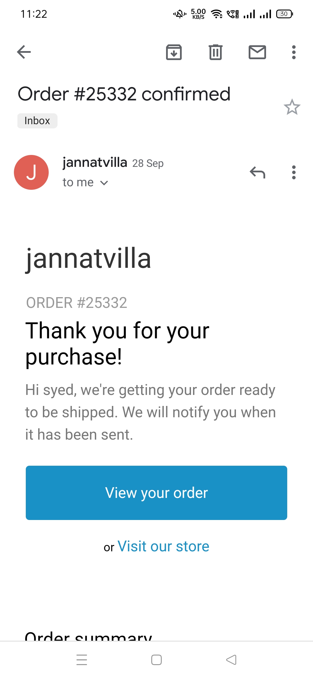 Jannatvilla store i have purchased and i not got product r response please help me out