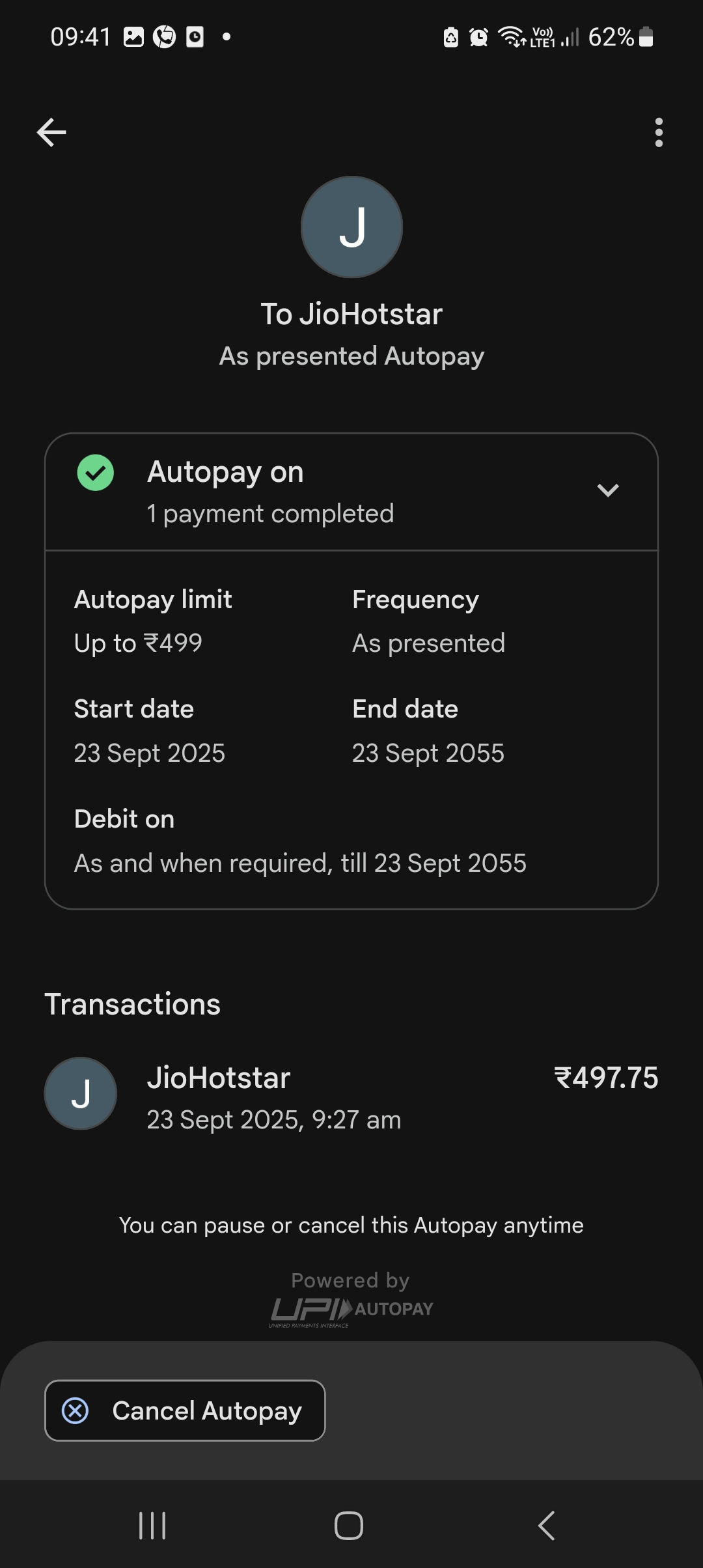 I had a yearly plan for jio hotstar and at the end I switched to a differentn plan. To my utter surprise A yearly amount was autodebited from my account plus the new subscription amount.I have mailed them but with no response. I request arbitration and refund of Rs 899 which was unlawfully deducted.