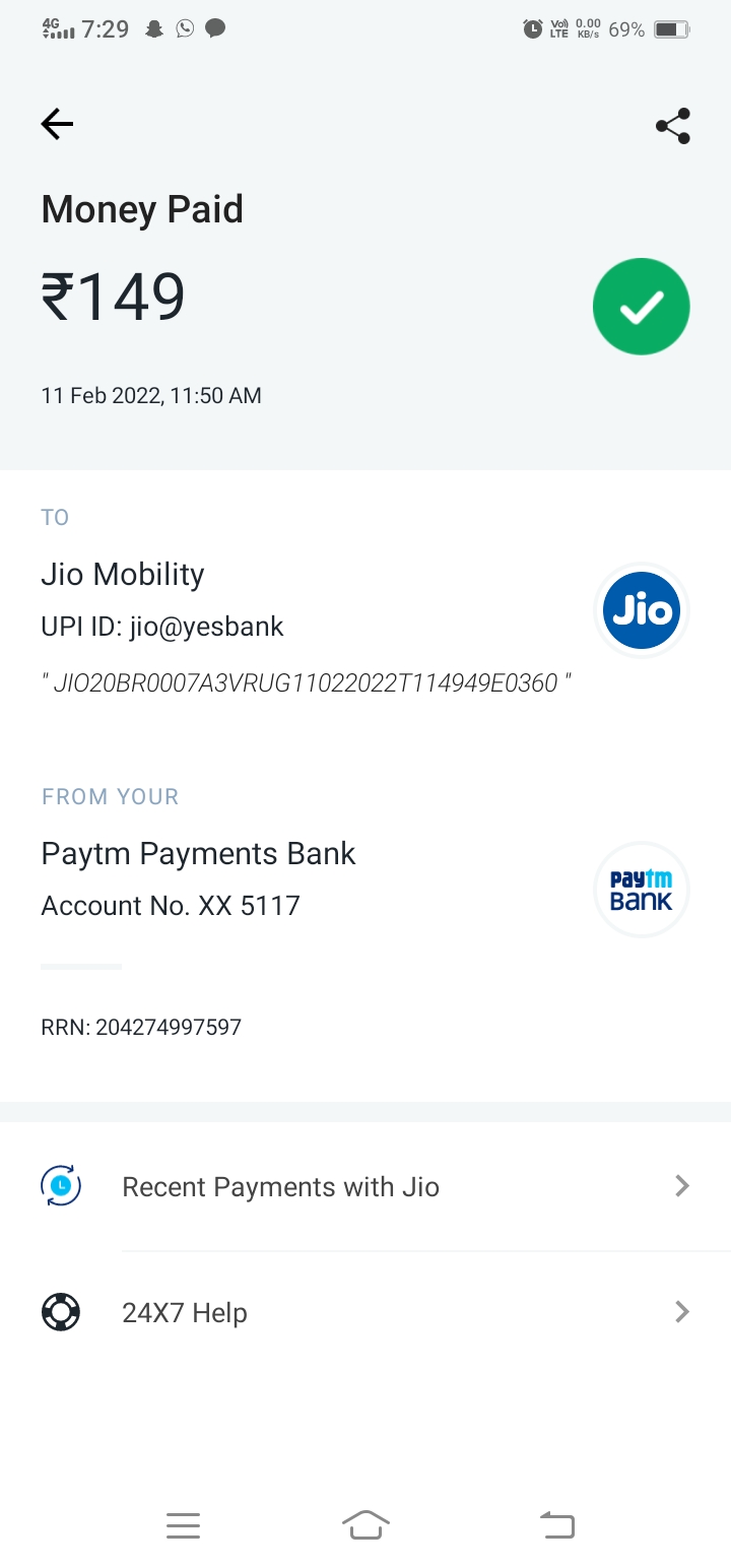 Dear sir , My name is Rajnish Prajapati and I trying to recharge my DAD’s phone using Paytm and the transaction is processed by jio@yes bank payment gateway but the money is deducted from my account and recharge don’t happen after some-words it say’s recharge failed and try again even money had deducted. So please kindly check my amount and refund my money . I am attaching the screenshot of my transaction reference.