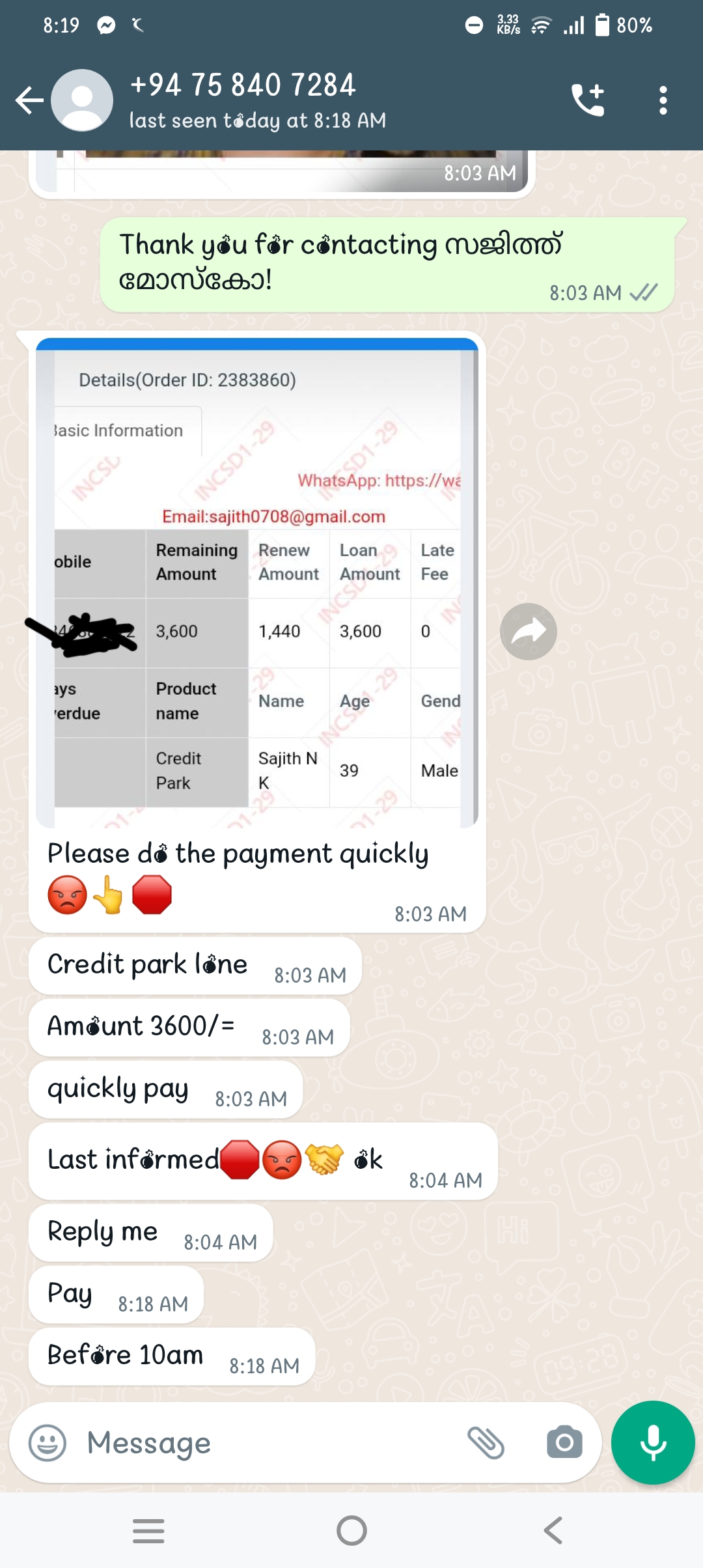 Secondly they have added 2 more loans and made a total repayment amount of 10800 where the other amount is not even credited. I checked my bank, I checked my statement.