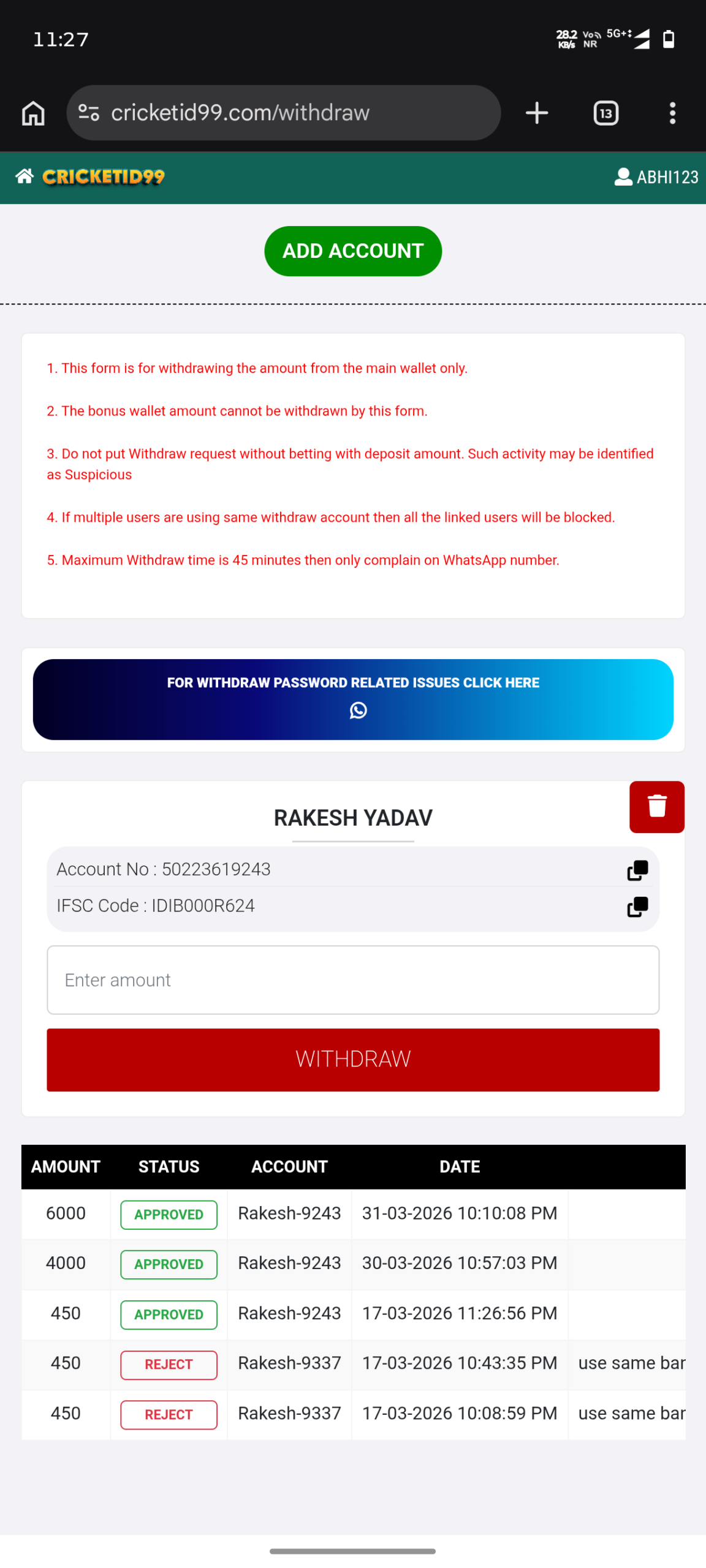 | Name(s) of companies complained against | https://cricketid99.com/withdraw |