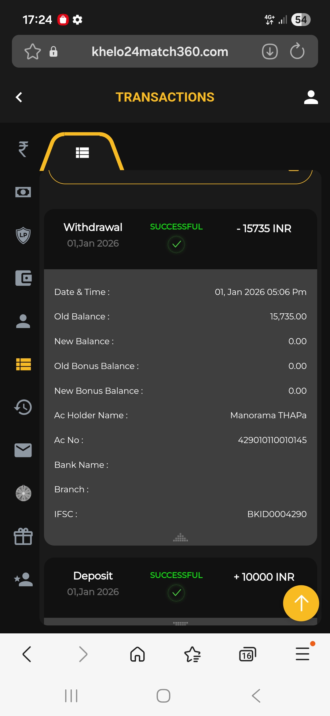 In khelo bet i deposited the money and withdrawn the money…the transactions shows successful but the amount gave not been credited