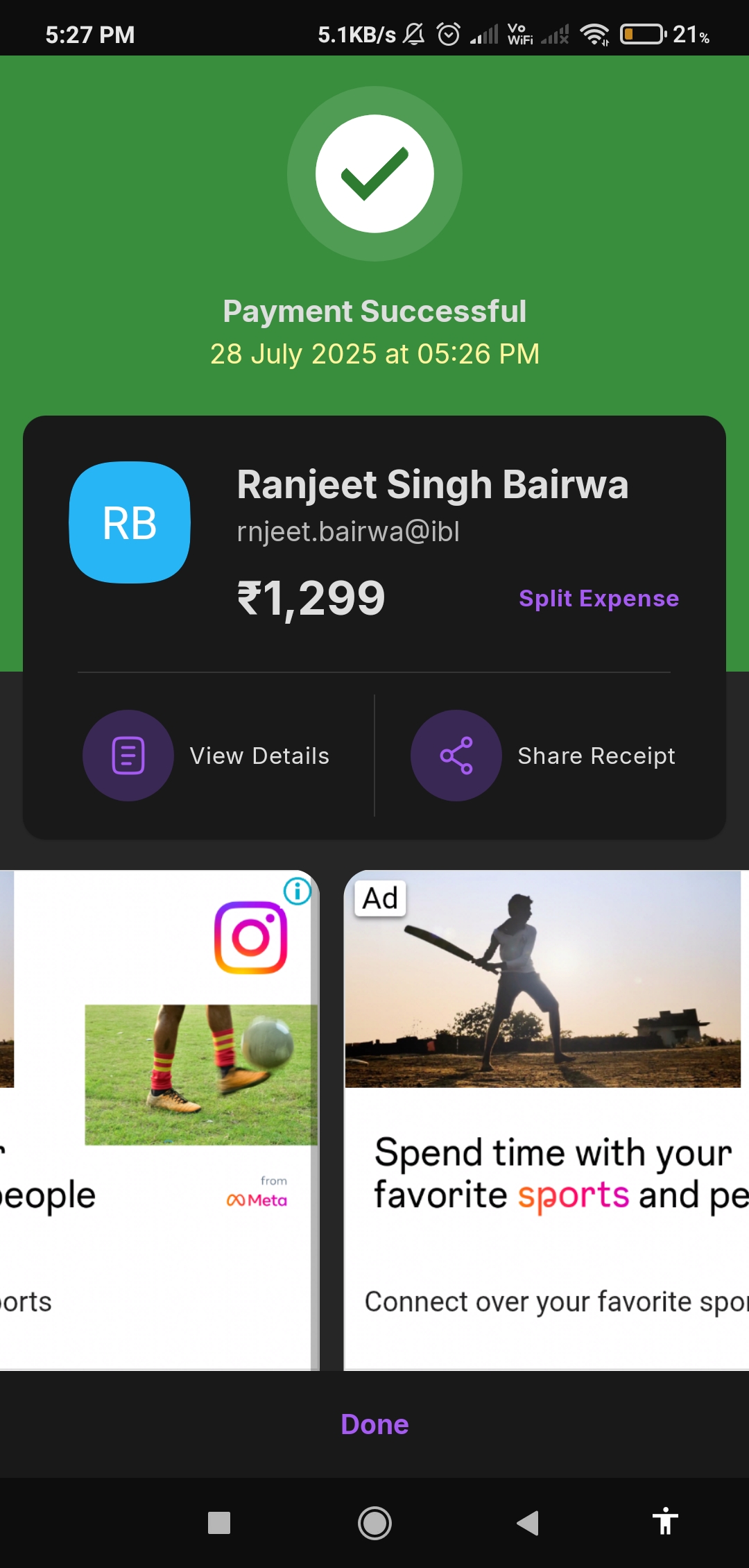 Yesterday I ordered a dress from an Instagram page, I paid Rs.1299 and then he is asking me to pay Rs.499. I asked for ID proof and he sent PAN card and Aadhar card only. Then I found out that it is a fraud. Then he is asking me to refund the money but he is not doing it. Instagram ID is khushi__collection __0011 and phone no. is +91 77268 73225