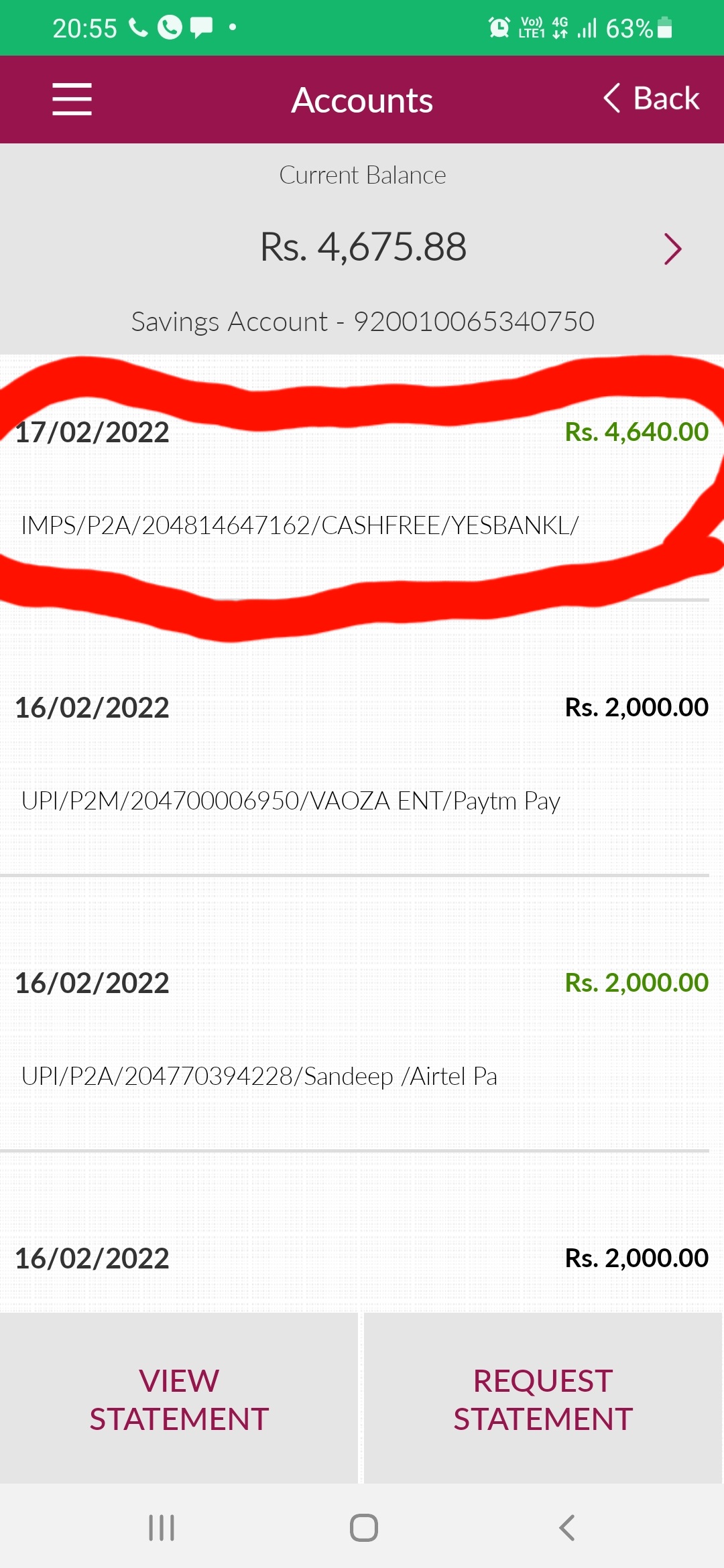 I checked my account credit money is 4640